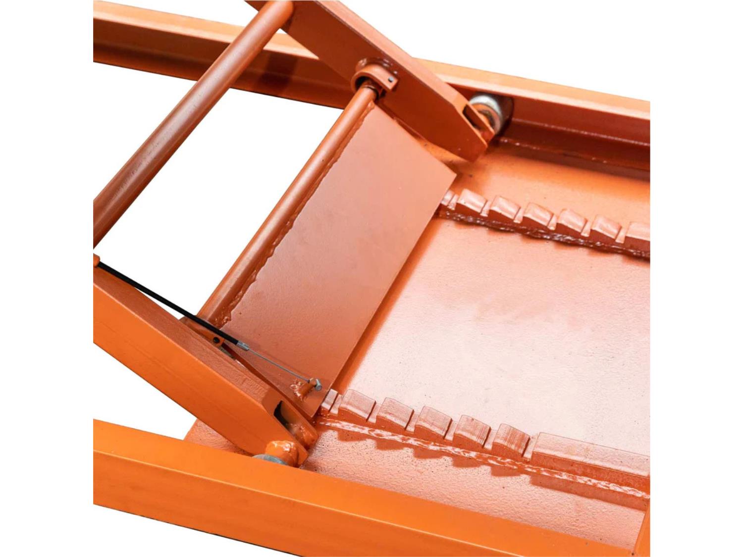 1500 lb maximum capacity, air assisted hydraulic lift, 32-1/2 inch maximum height, 28 inch main platform width, (2) 10 inch side extensions, 48 inch total work platform width, 77 inch platform length