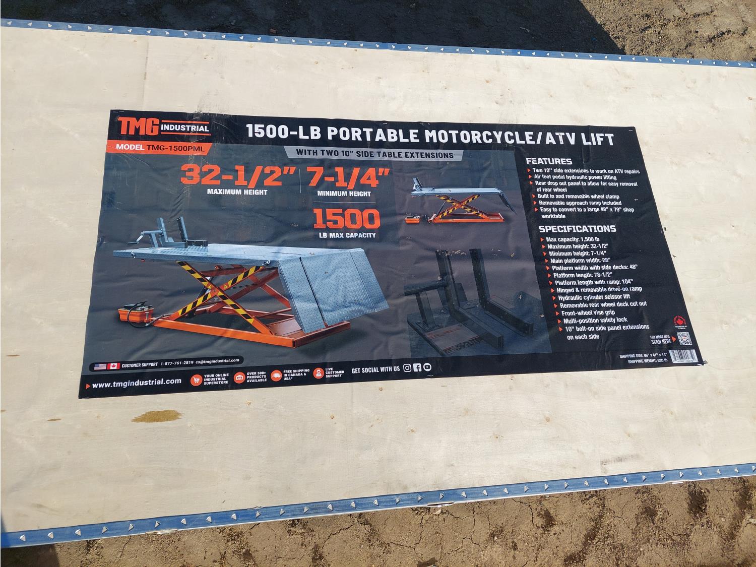 71 TMG Industrial TMG-1500PML 1500-lb Portable Motorcycle/ATV Lift (Unused)