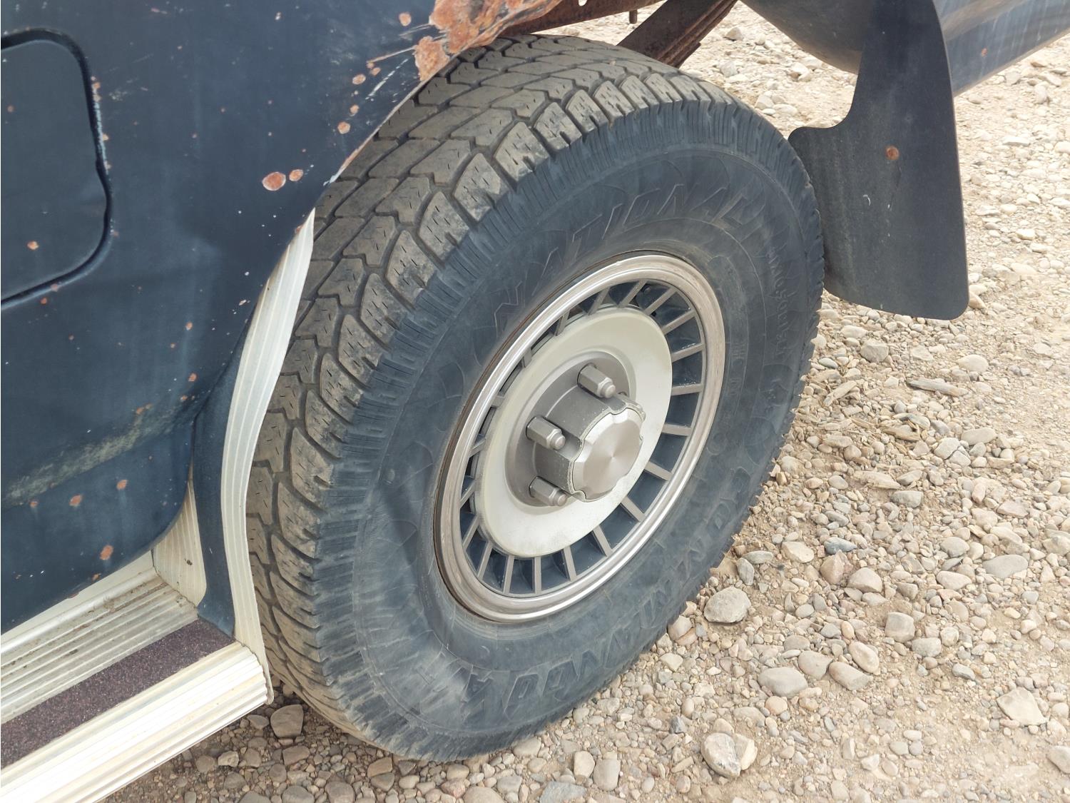 4.9 L, 6 cylinder, gas, 5 speed manual transmission, A/C, 6.5 ft box, electric trailer brake, 31X10.5R15 tires