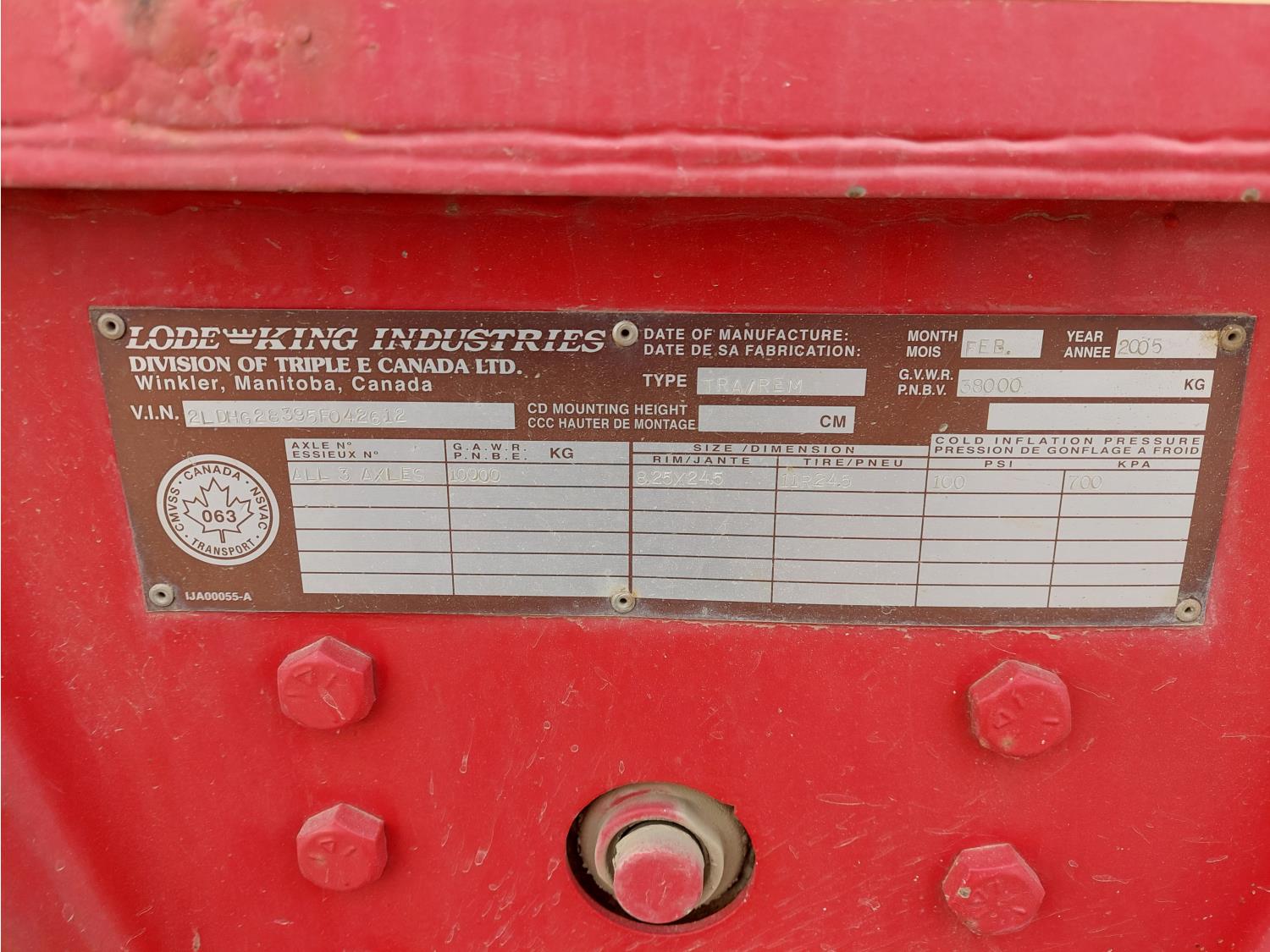 226 2005 Lode King Prestige 29 Ft TRI/A Lead Grain Trailer