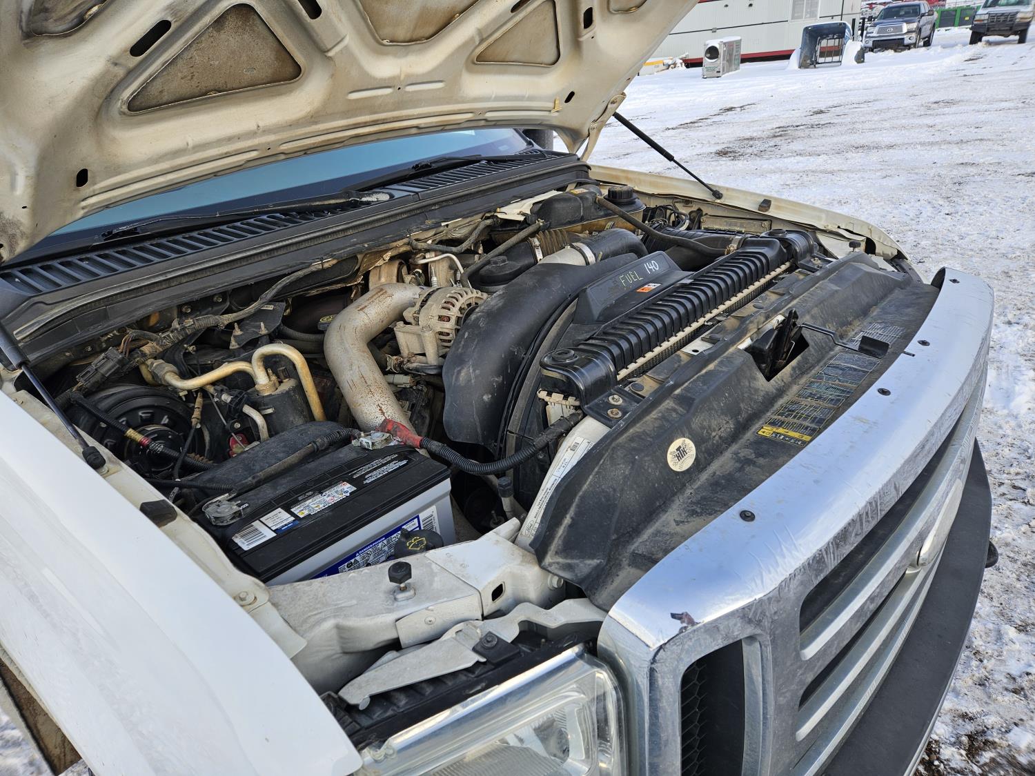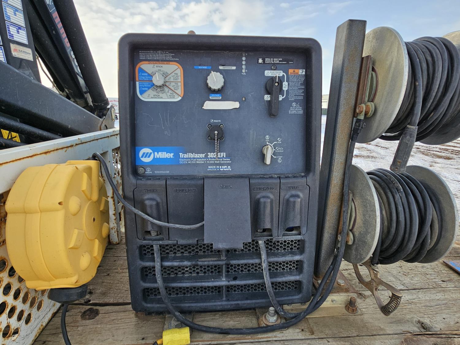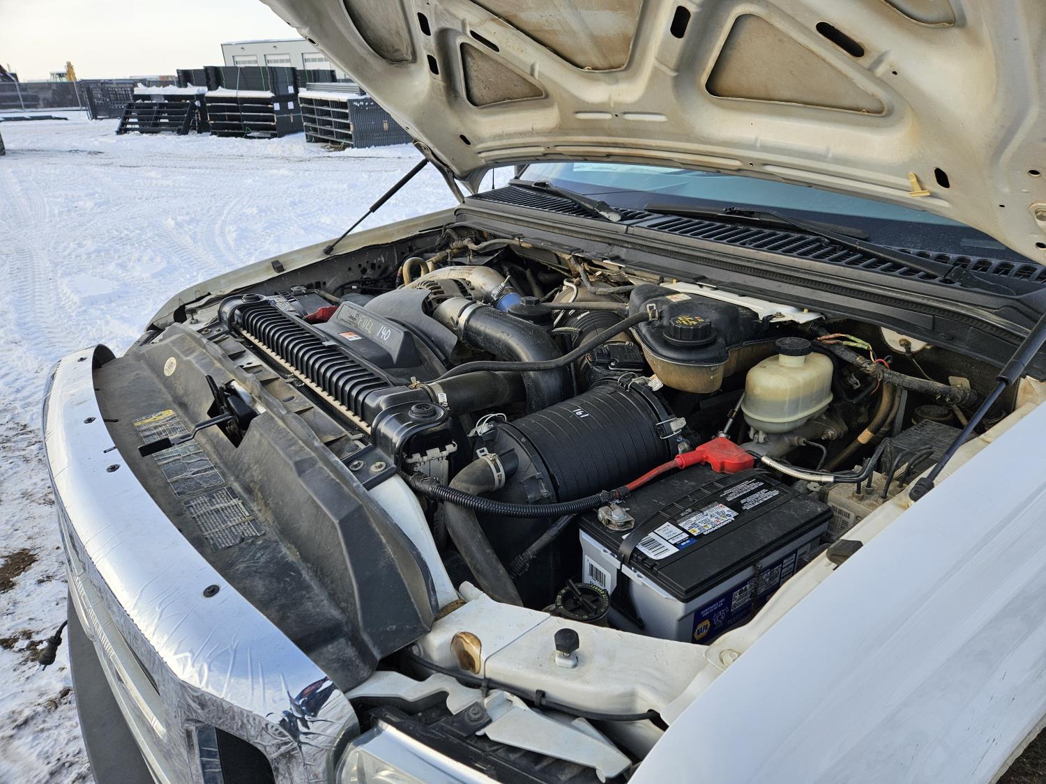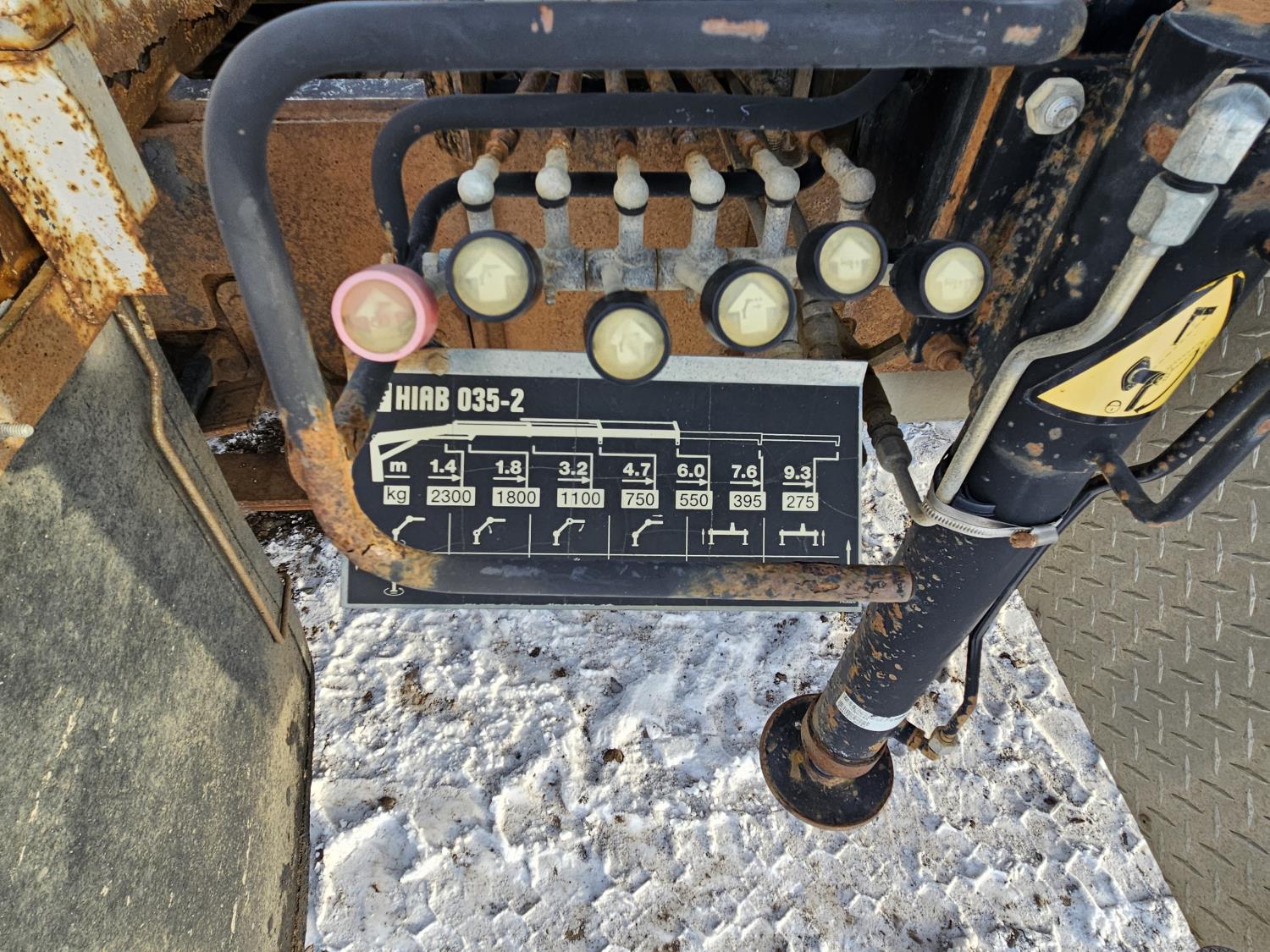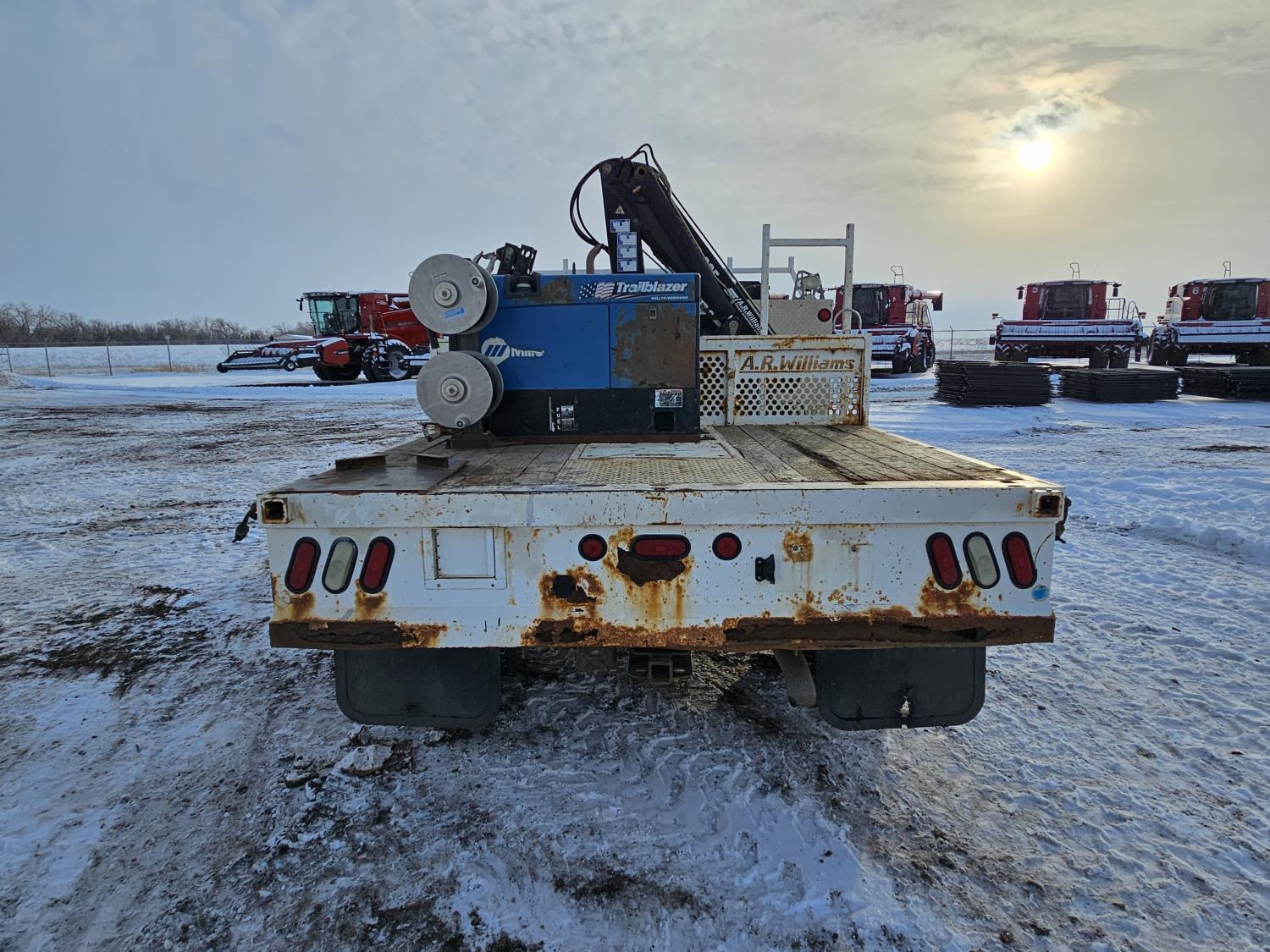 6.0 L V8 engine, electric engine block heater, manual transmission, A/C, cruise control, steel headache rack, steel tool boxes, Hiab crane, outriggers, Miller Trailblazer welder, 265/70R17 tires