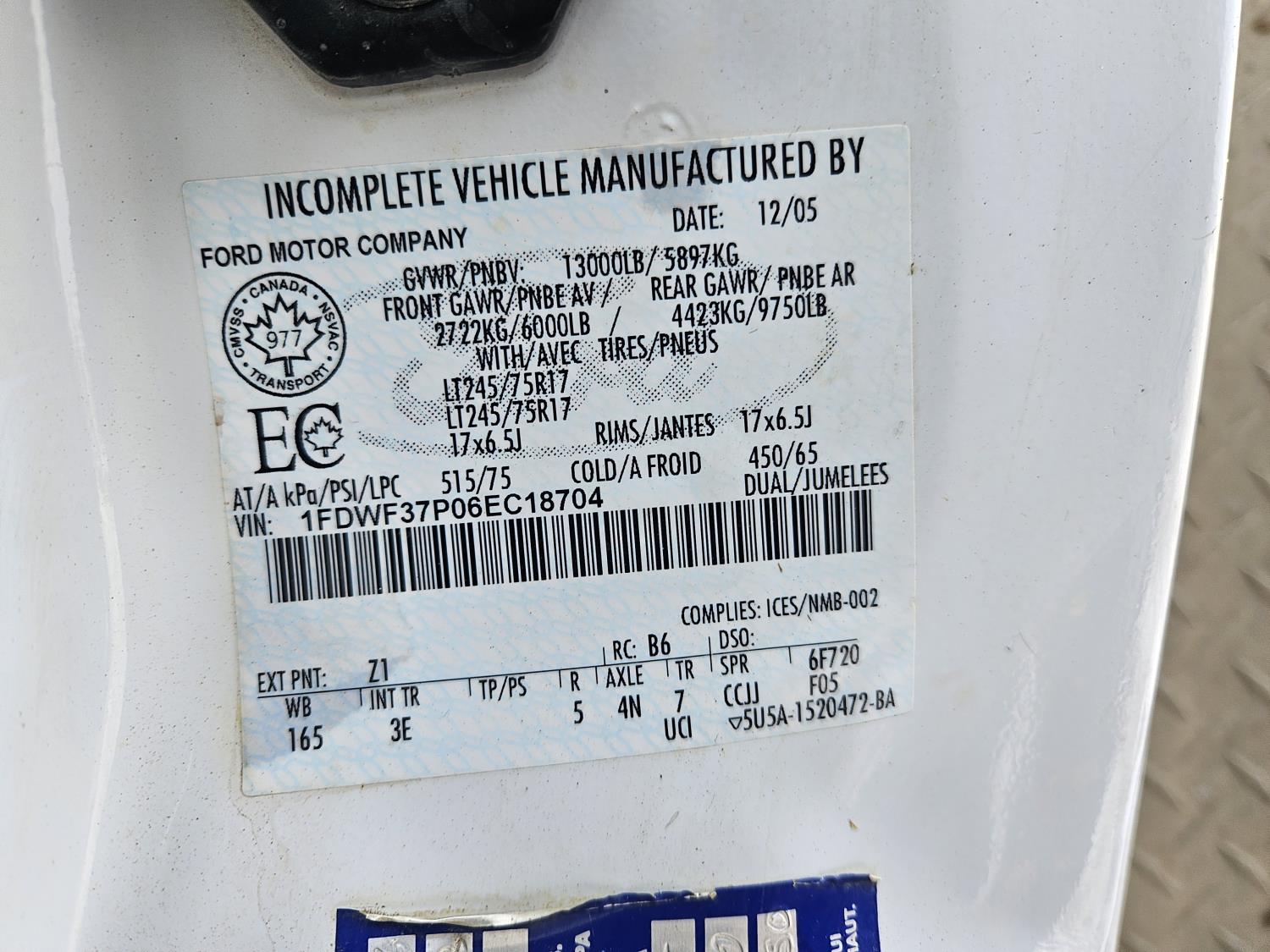 - Ser #: 1FDWF37P06EC18704