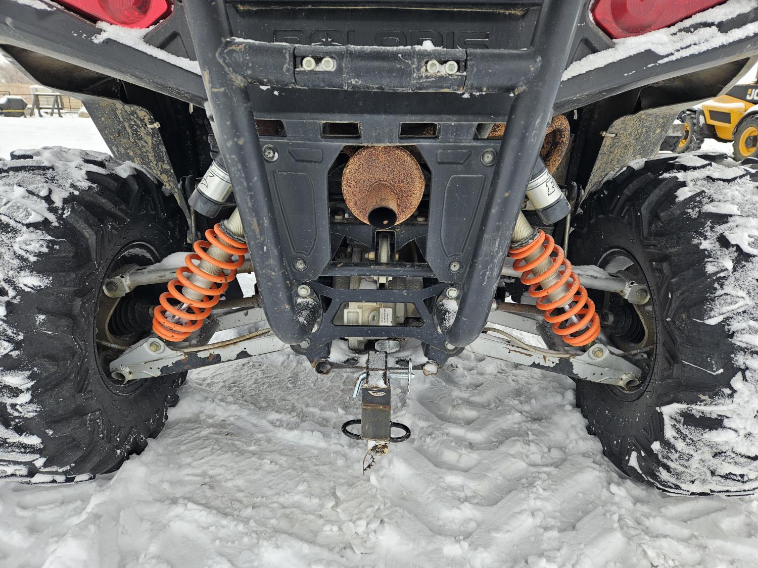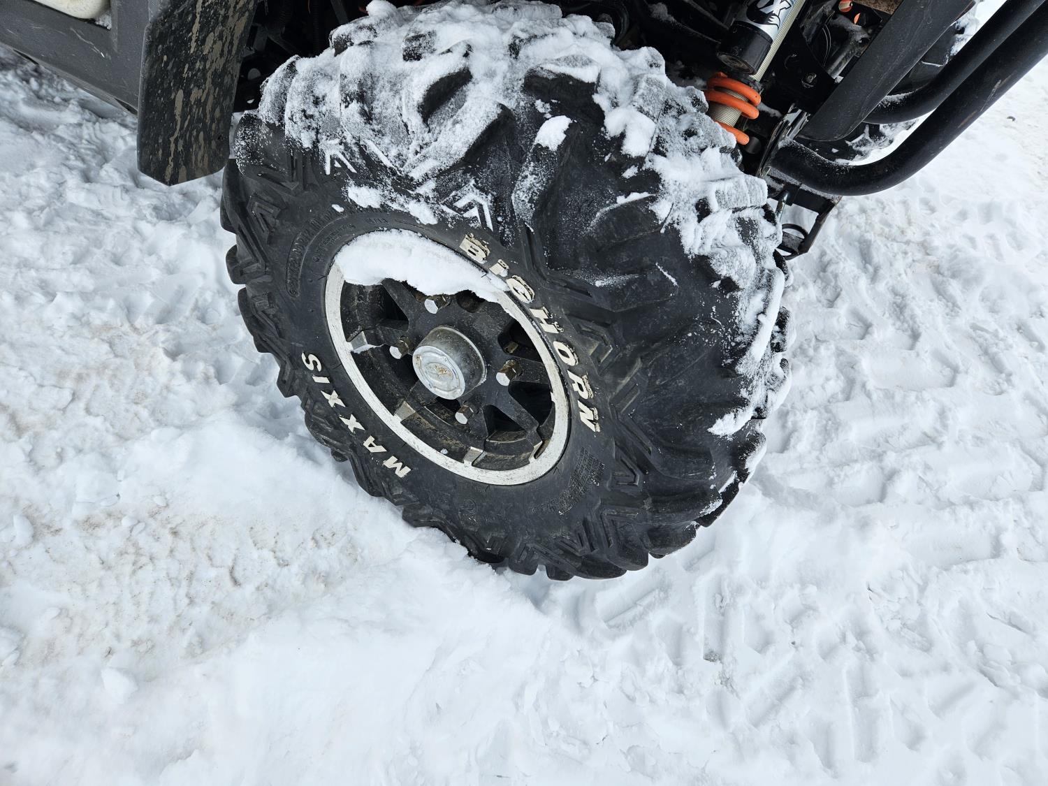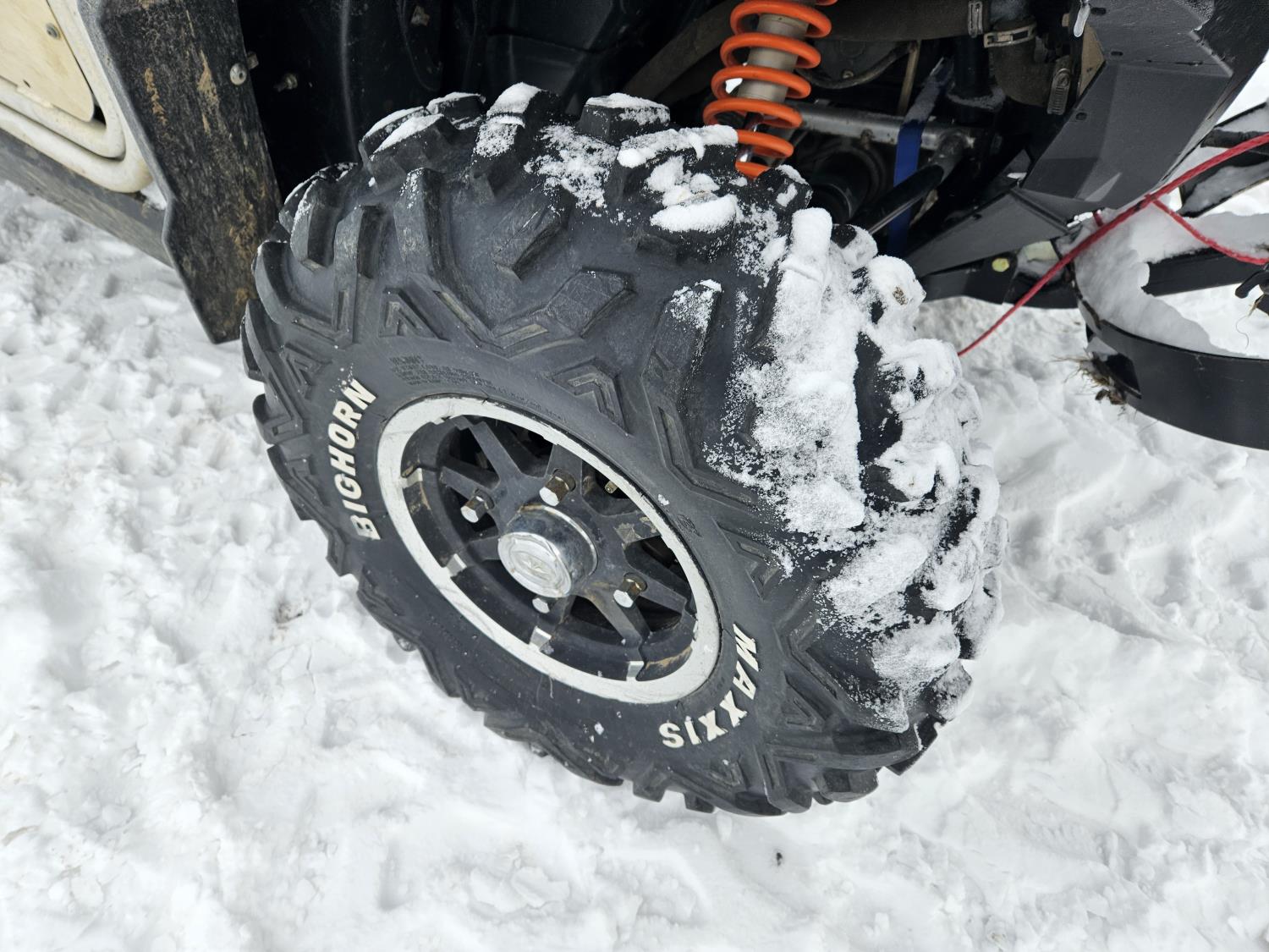 800 cc fuel injected water cooled engine, automatic transmission, Hi/Lo range, reverse, open canopy, 2 passengers, power steering, 60 inch front blade, front winch, front locking differential, independent suspension, 27X9-12 tires