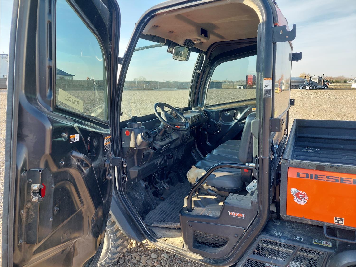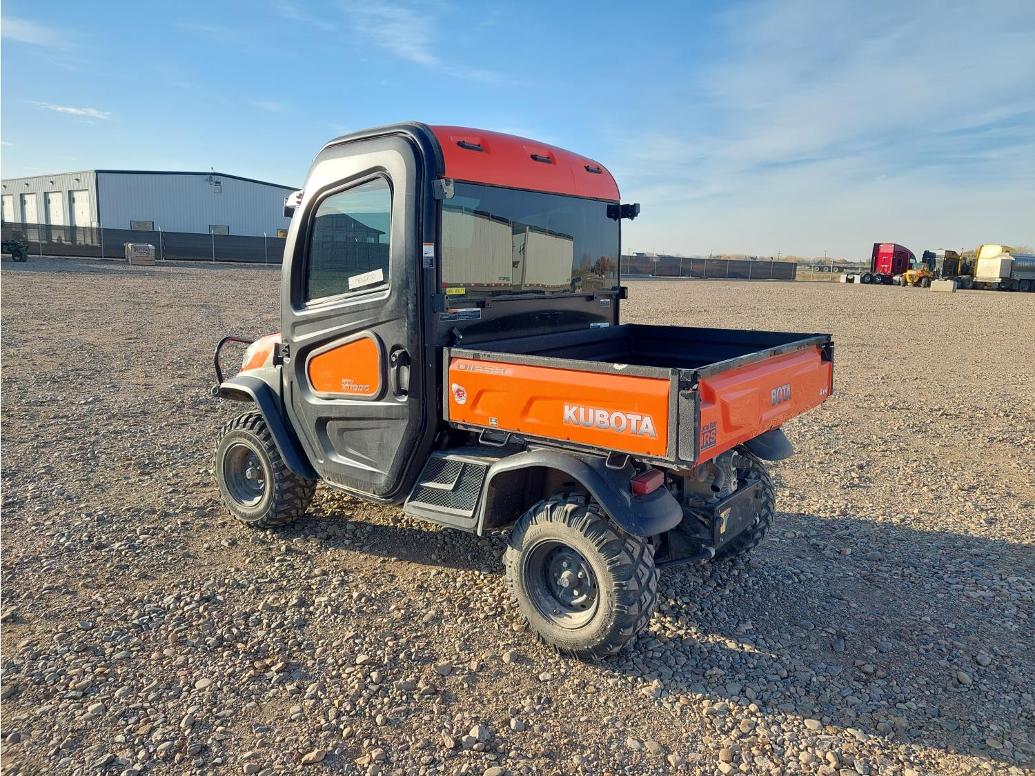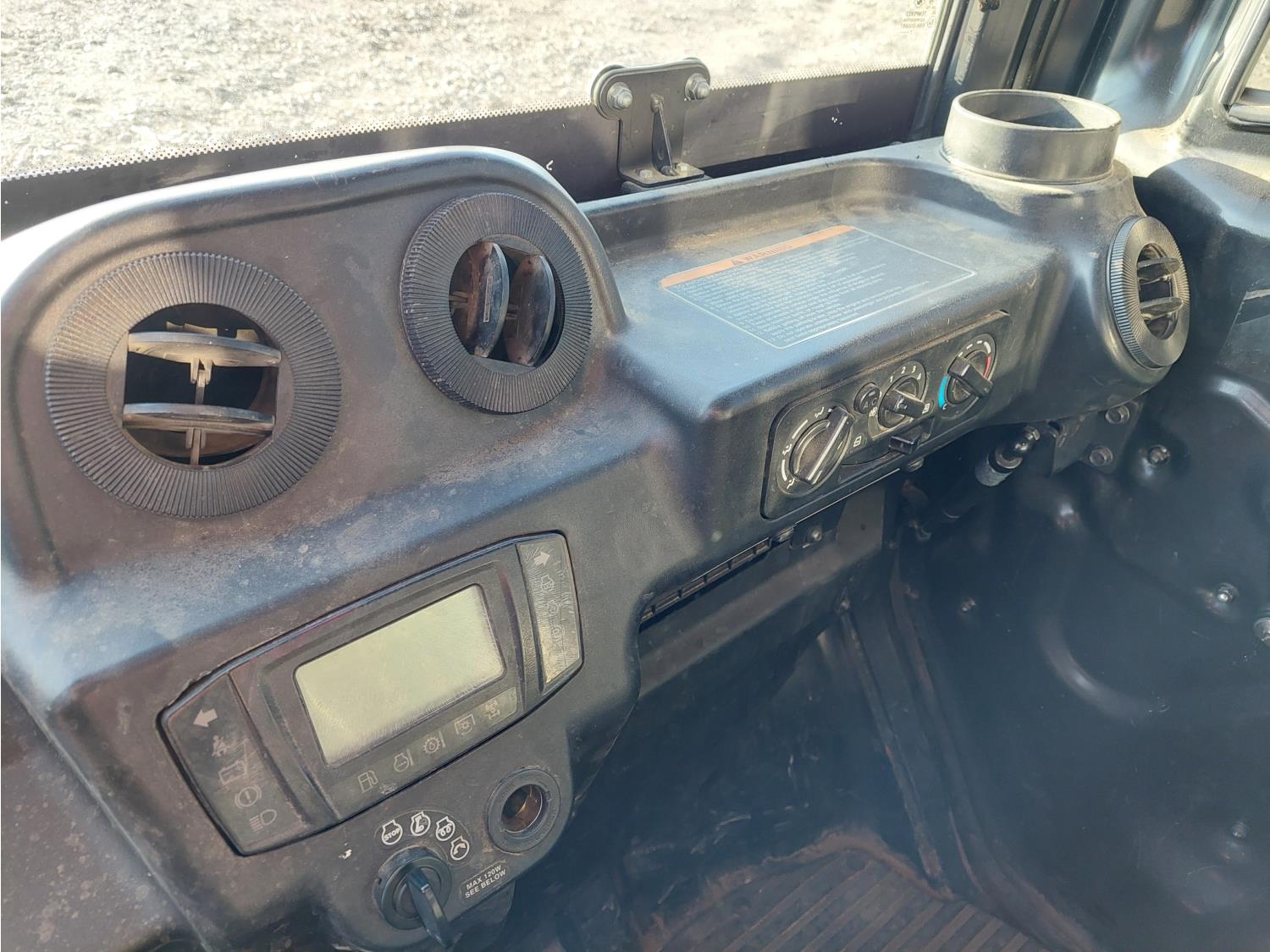 1100 cc water cooled diesel engine, automatic transmission, Hi/Lo range, reverse, enclosed cab, 2 passengers, A/C, heater, windshield, electric dump box, 42 inch box, 26X10R12 tires