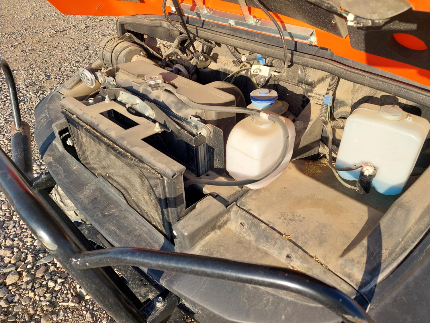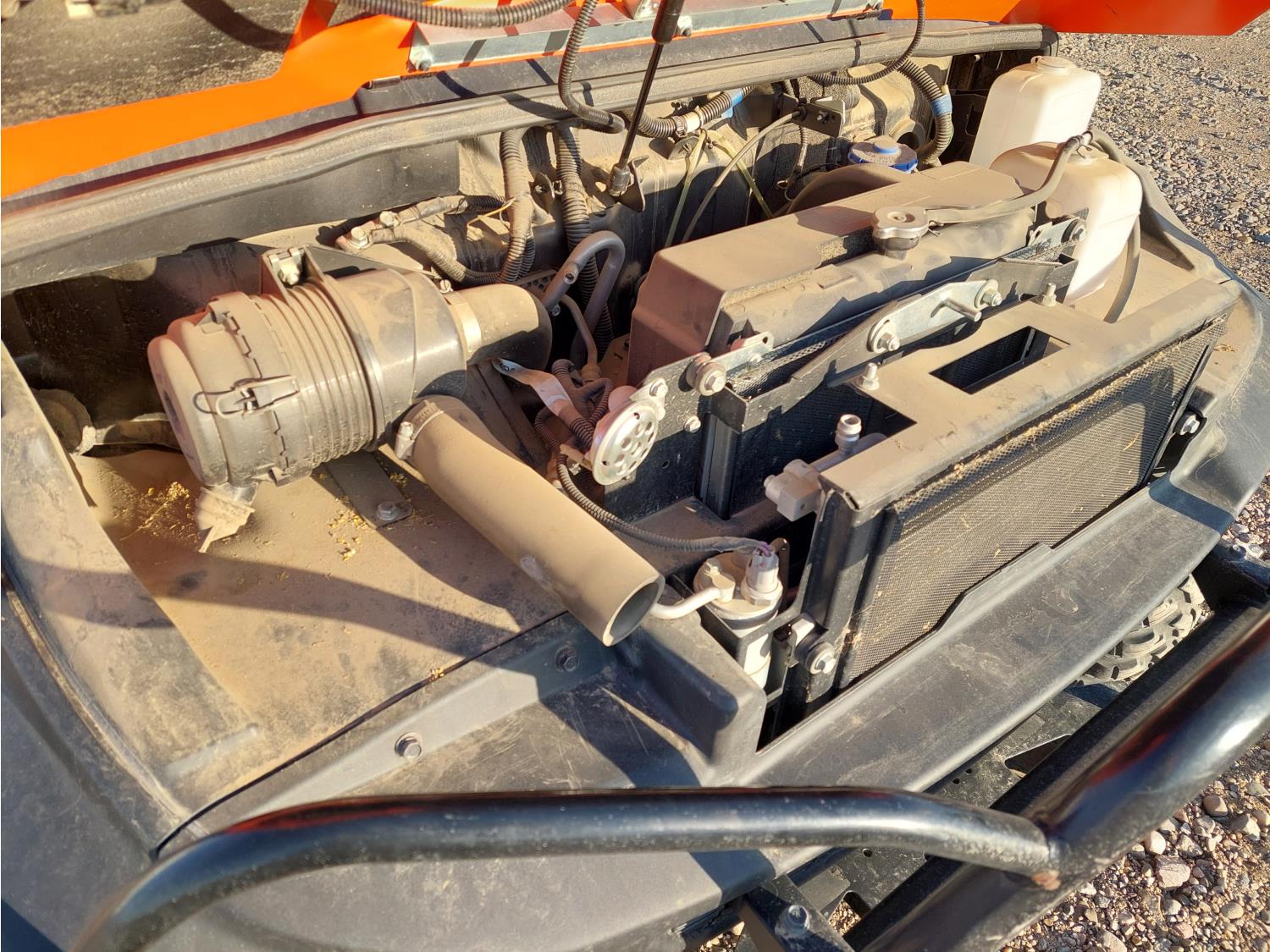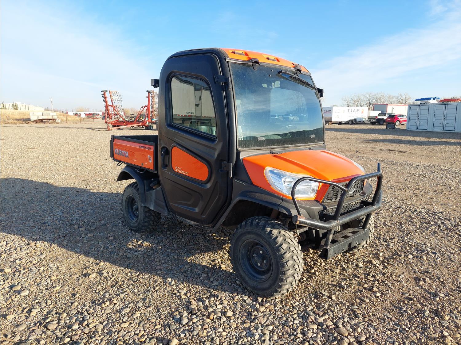 1100 cc water cooled diesel engine, automatic transmission, Hi/Lo range, reverse, enclosed cab, 2 passengers, A/C, heater, windshield, electric dump box, 42 inch box, 26X10R12 tires