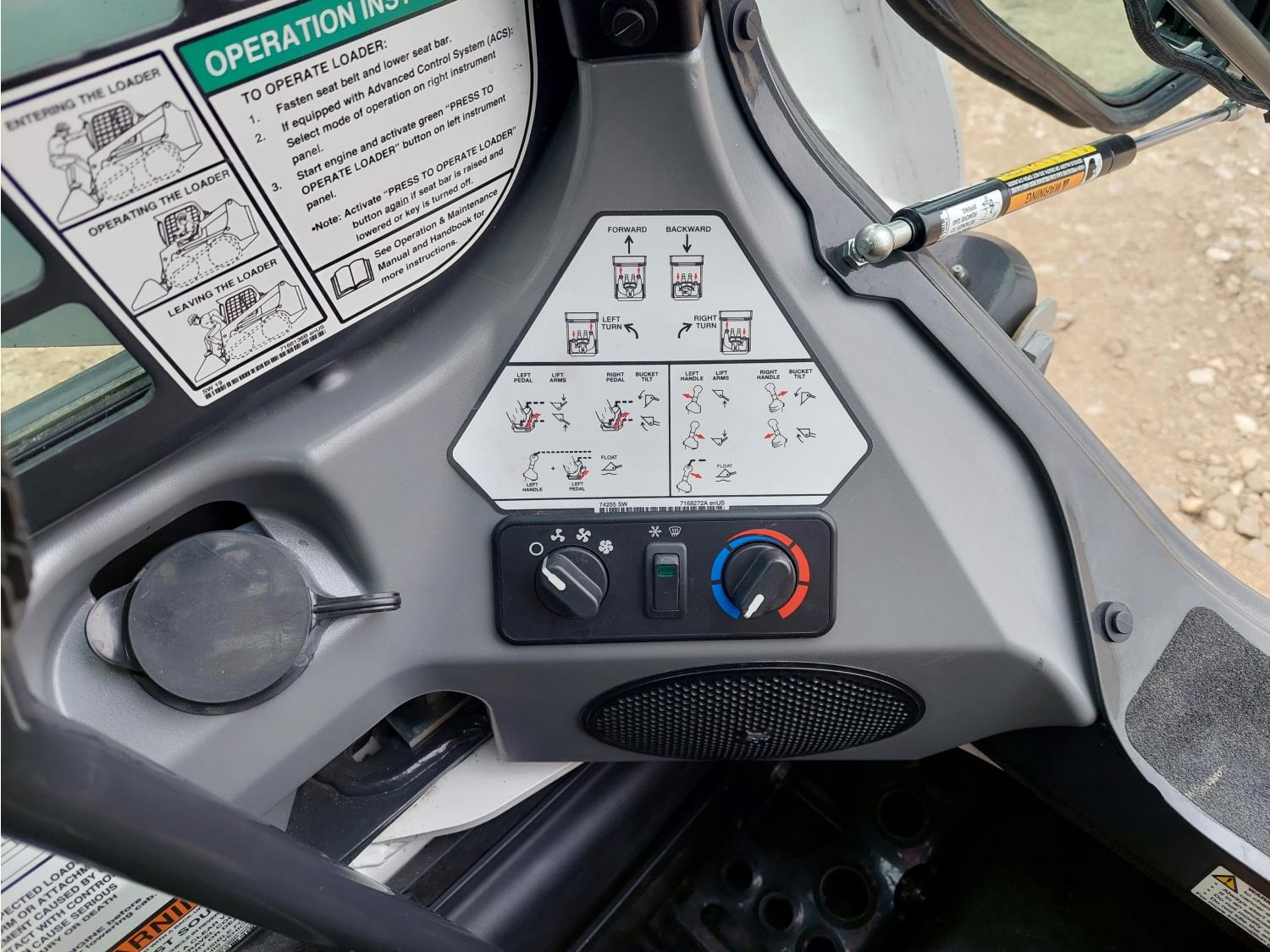 Enclosed cab, A/C, ride control, pilot controls, diesel engine, DEF required, 2 speed transmission, 92 hp, auxiliary hydraulics, 7 pin attachment control, hydraulic bucket position, P28 performance package, power Bobtach, C37 comfort package, cab accessory package, deluxe instrument panel w/ keyless start, sound reduction, hydraulic Q/C coupler, 12-16.5 tires