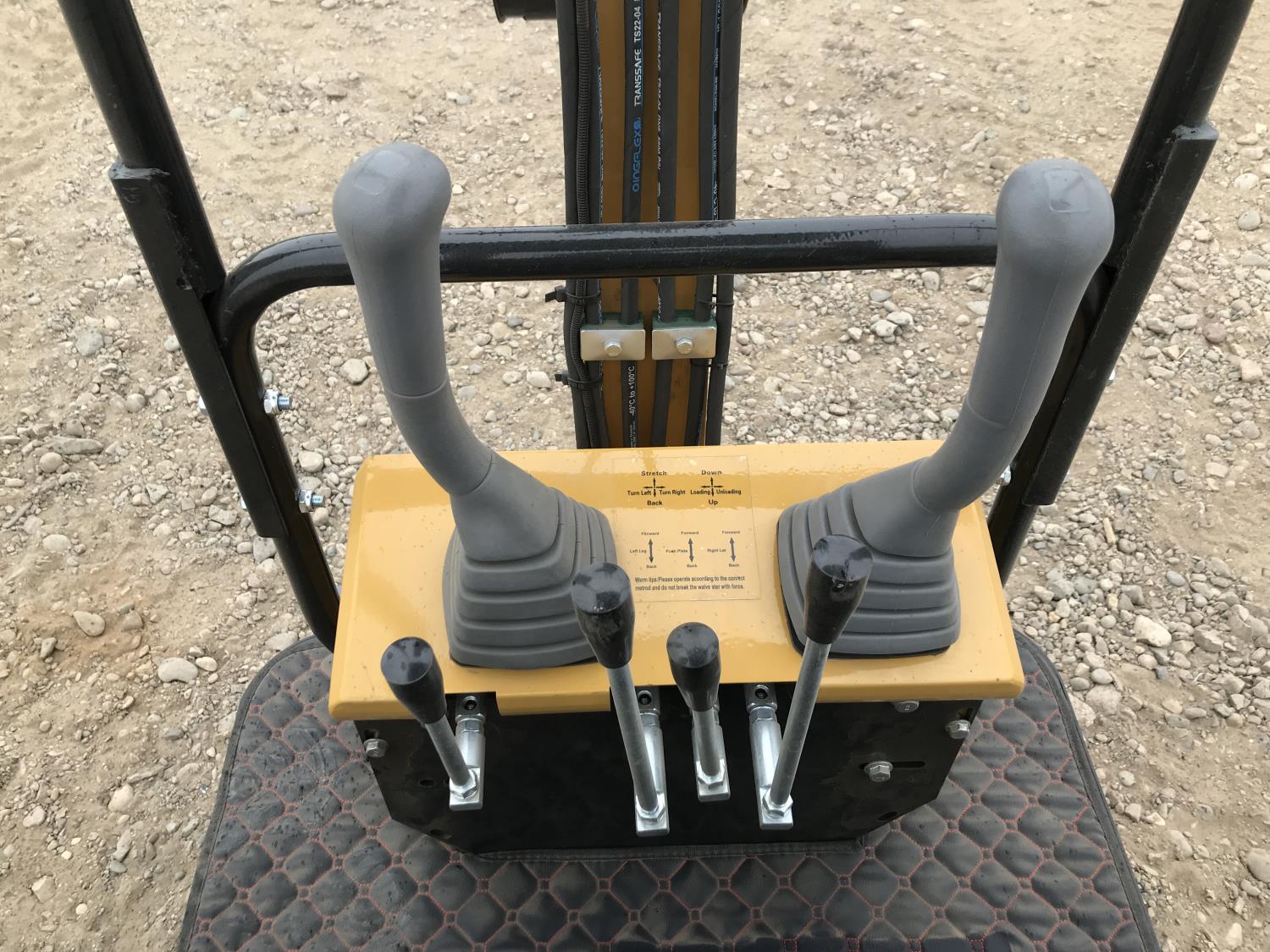 Open station, gas engine, 16 inch dig bucket, manual coupler, manual thumb, 31 inch stick, backfill blade, 7 inch rubber tracks,