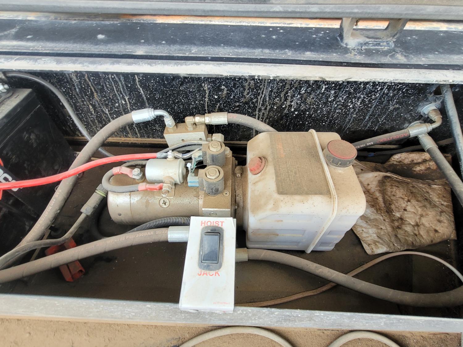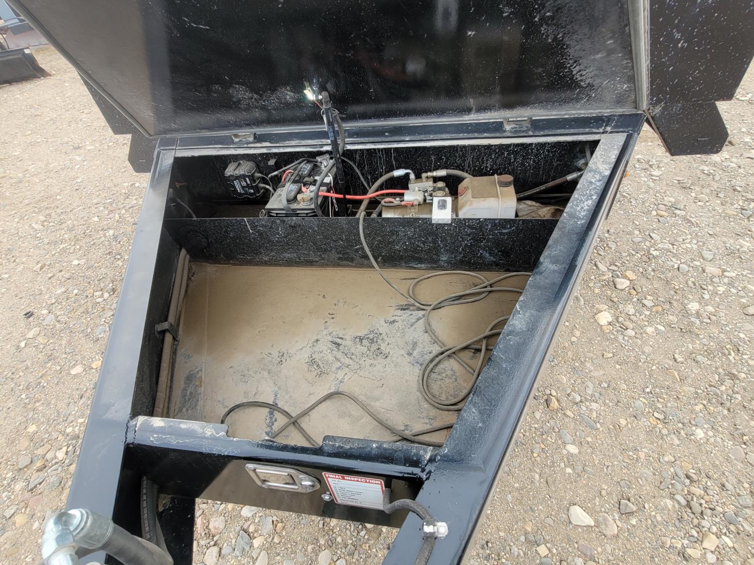 Ball hitch, 6 ft 10 inch box width, roll tarp, ramps, electric brakes, torsion suspension, 10,000 lb axles, Electric over hydraulic Jack, Electric over hydraulic dump, 235/75R17.5 tires