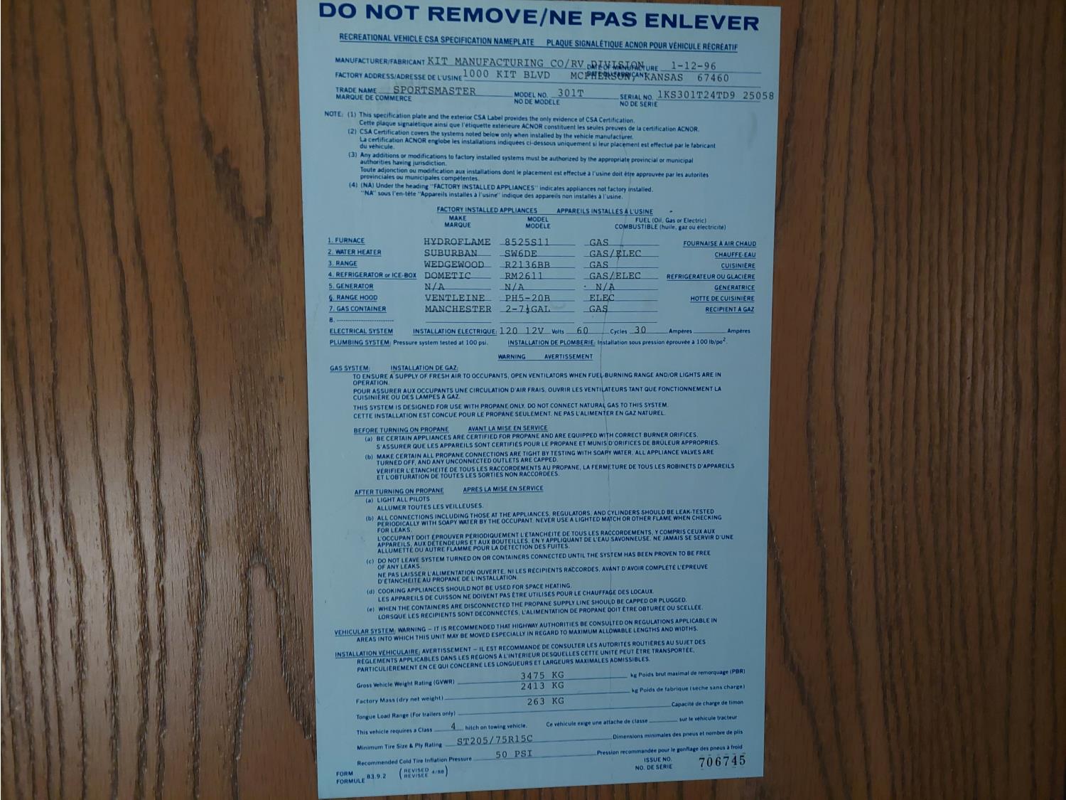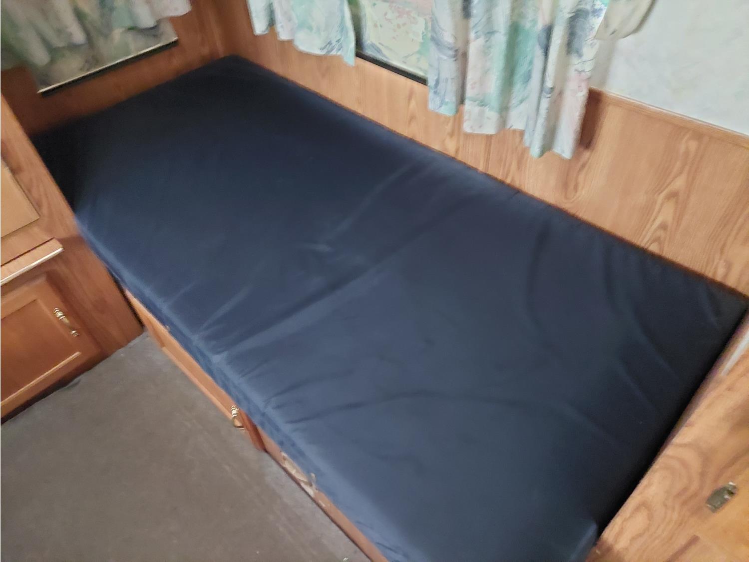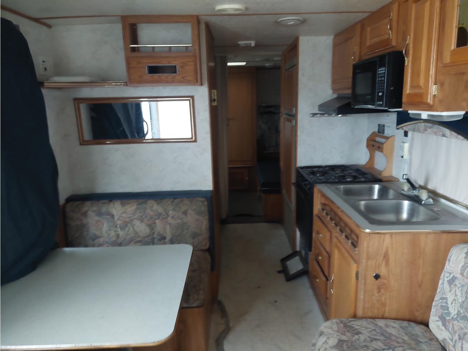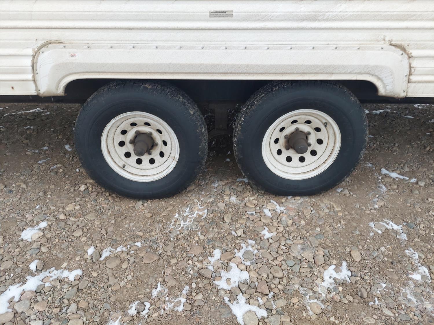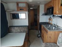 Sleeps 6, stove, fridge, microwave, full bath, master bedroom, bunk beds, A/C, manual awning, spring suspension, electric brakes, 225/75R15 tires