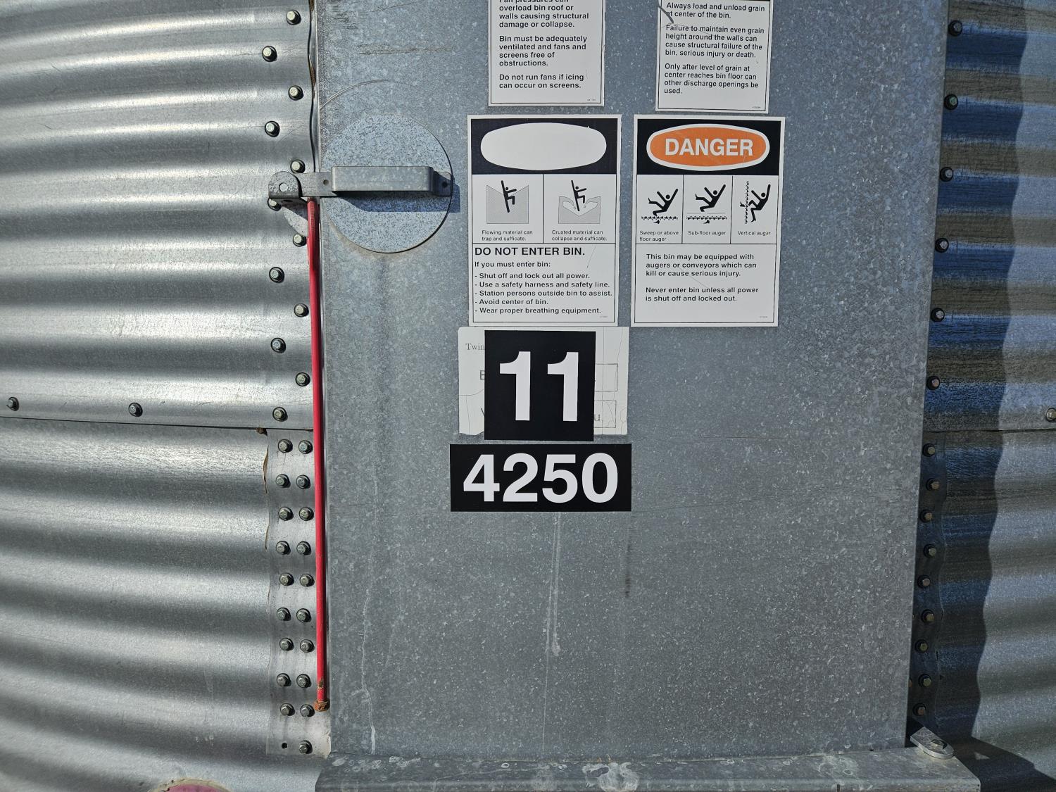 4,250± bu capacity, wood floor, ladder, 44 inch rings, unload auger