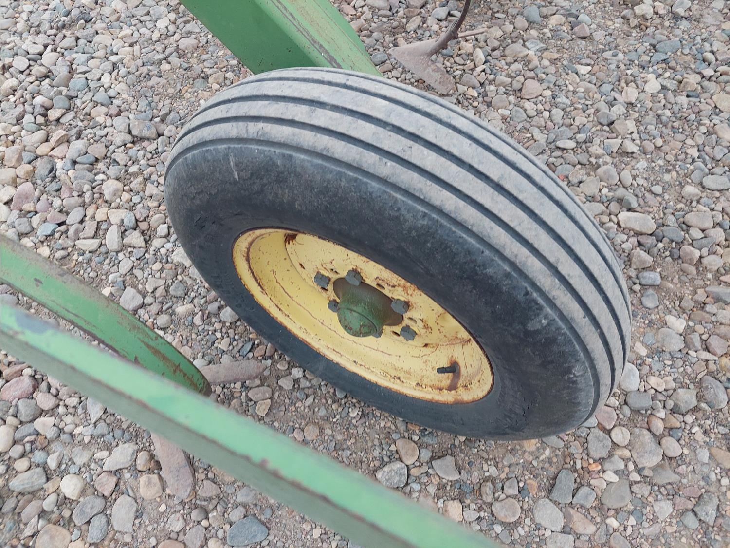 18 inch spacing, 12 inch sweeps, rear hitch, 6.70-15 main frame tires