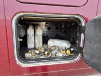 Cummins ISX 14.9 L 6 cylinder 565 HP engine, engine block heater, MAXITORQUE 18 speed manual transmission, mid rise 64 inch sleeper, fridge, bunk beds, A/C, cruise control, leather interior, air ride seats, CB radio, aluminum moose bumper, aluminum headache rack, aluminum tool boxes, NEWAY air ride suspension, 14,600 lb front axle, 45,800 lb rear axles, diff lock, 247 inch WB, all aluminum wheels, 385/65R22.5 front tires, 11R24.5 rear tires