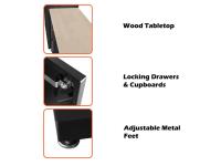 Fully-welded, pre-sealed wooden tabletop, workbench station, lockers, adjustable levelling, matte black powder coated finish
