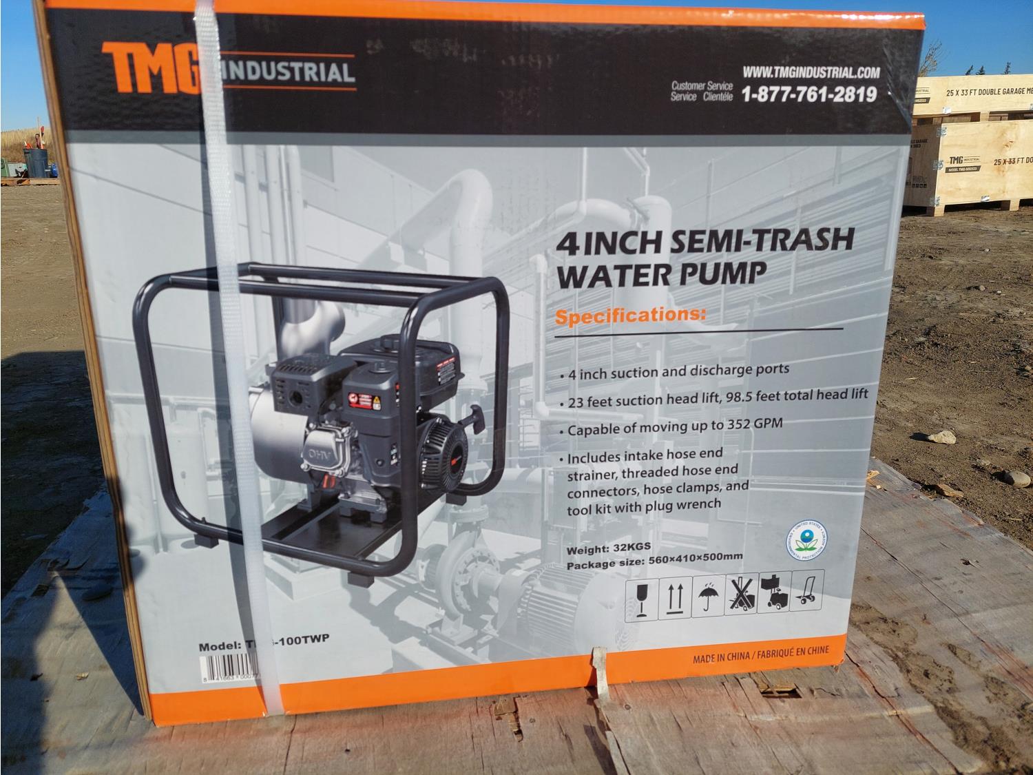 68 TMG Industrial TMG-100TWP 4 Inch Semi-Trash Water Pump with 7.5 HP Gas Engine (Unused)