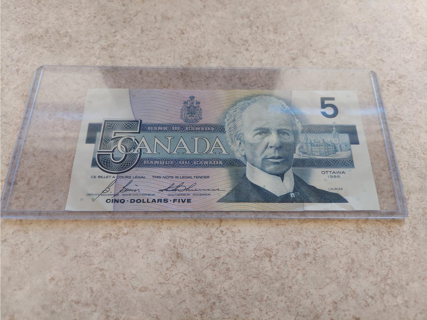1365 1986 Canadian Five Dollar Bill