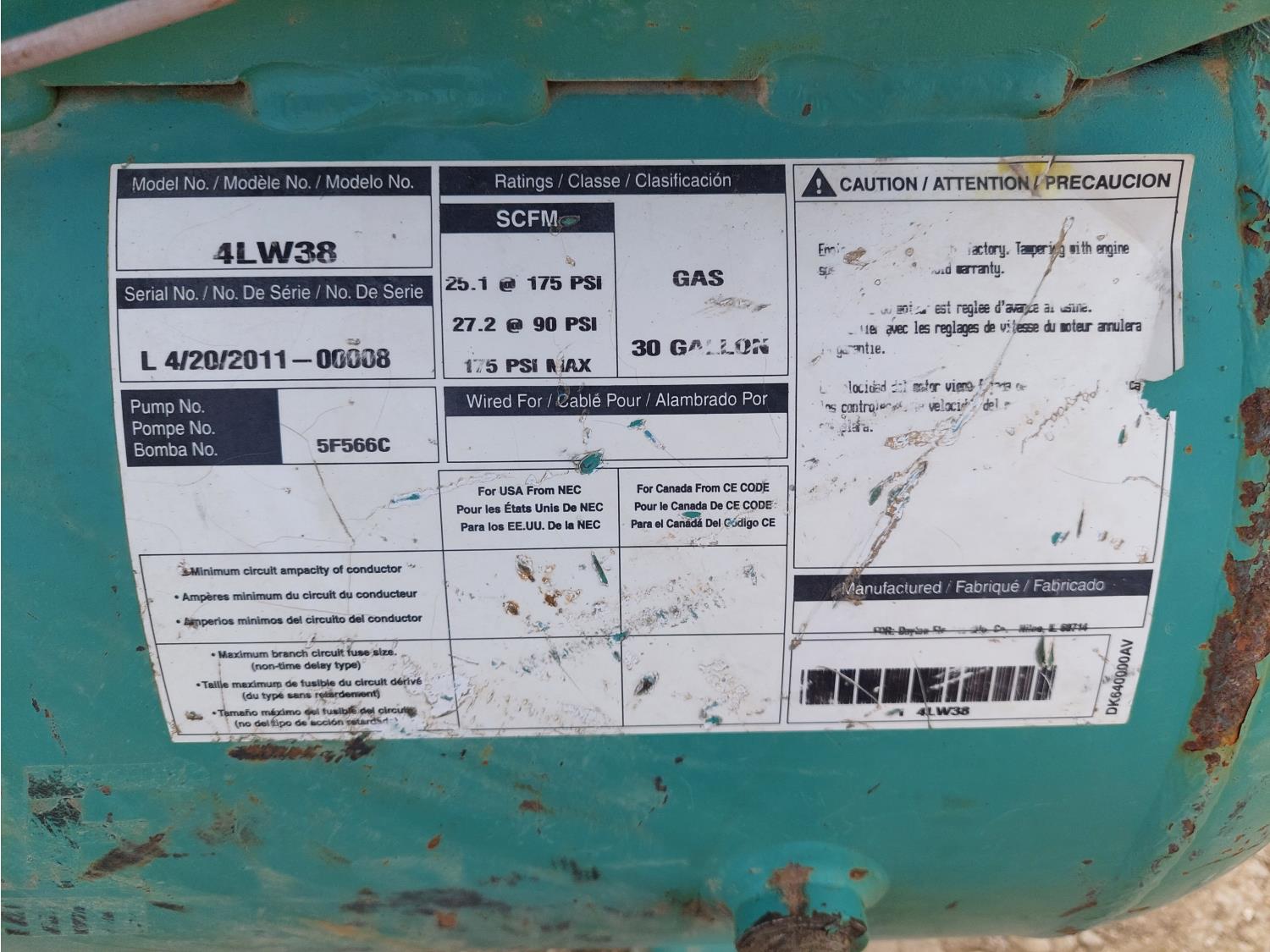 1174 30 Gallon Air Compressor