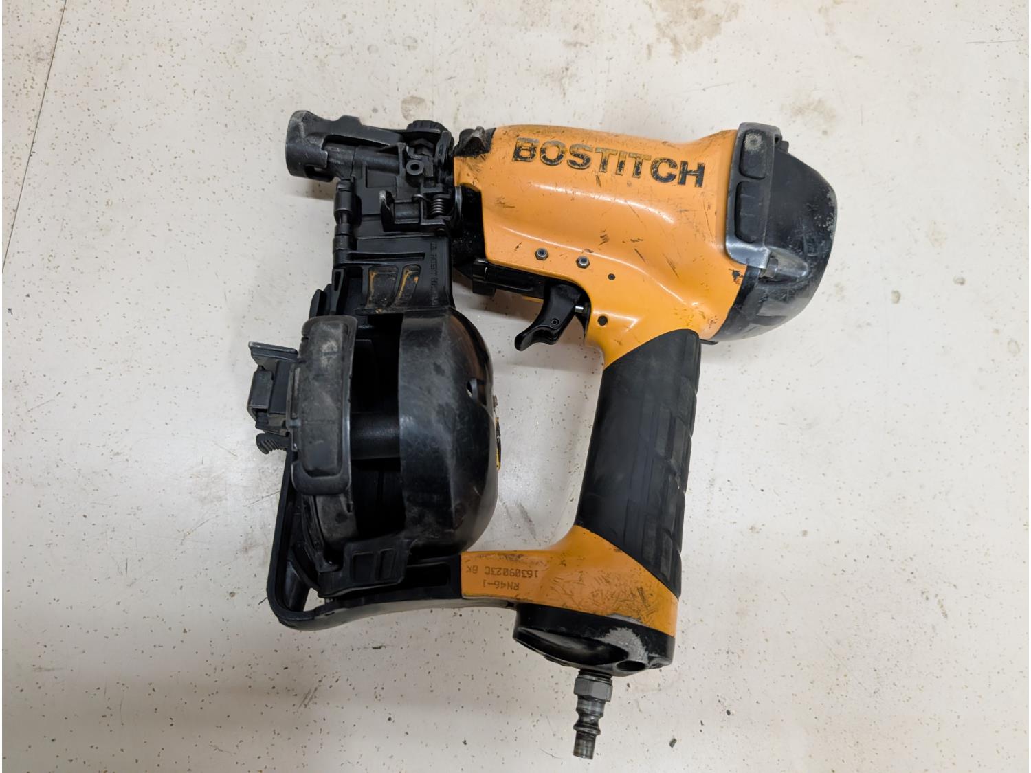 1161 Bostich Air Nailer, Bosch 18V Impact Drill, and Lincoln 12V Grease Gun