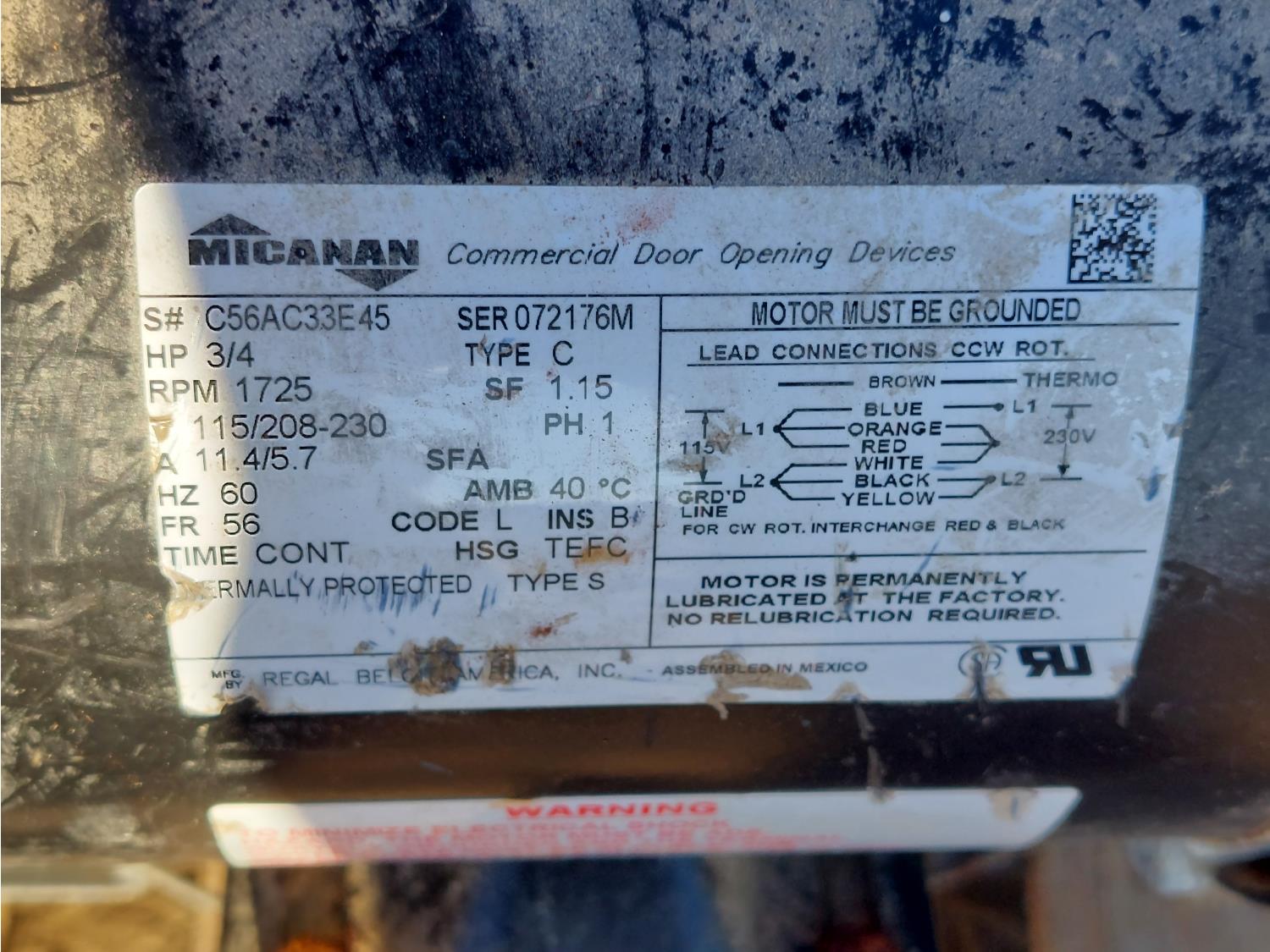 115V, 3/4 HP, single phase