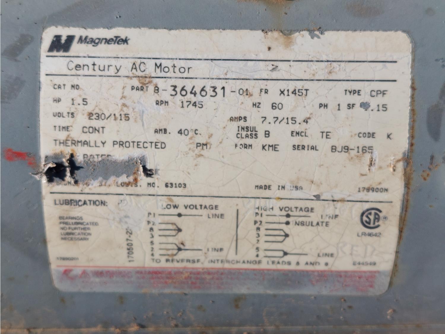 1341 Qty of (2) 1.5 HP Electric Motors
