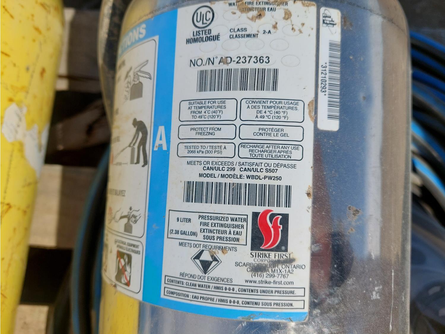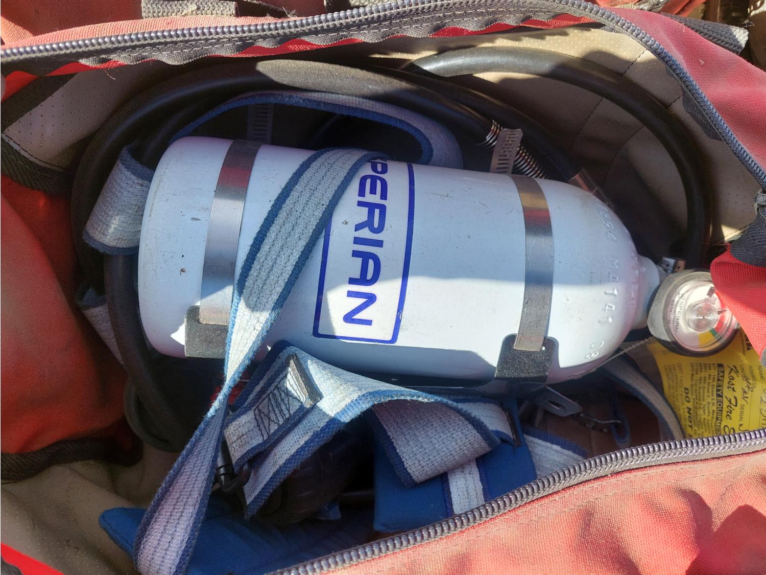 includes oxygen tank, hoses, and water fill fire extinguisher