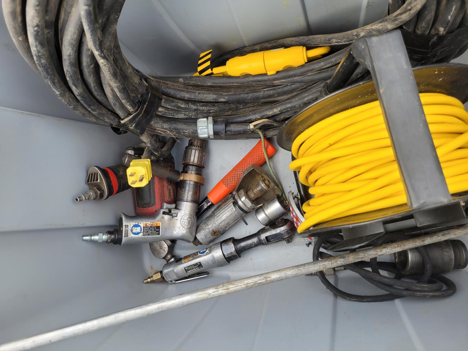 1214 Qty of Air Tools w/ Air Hose Reel