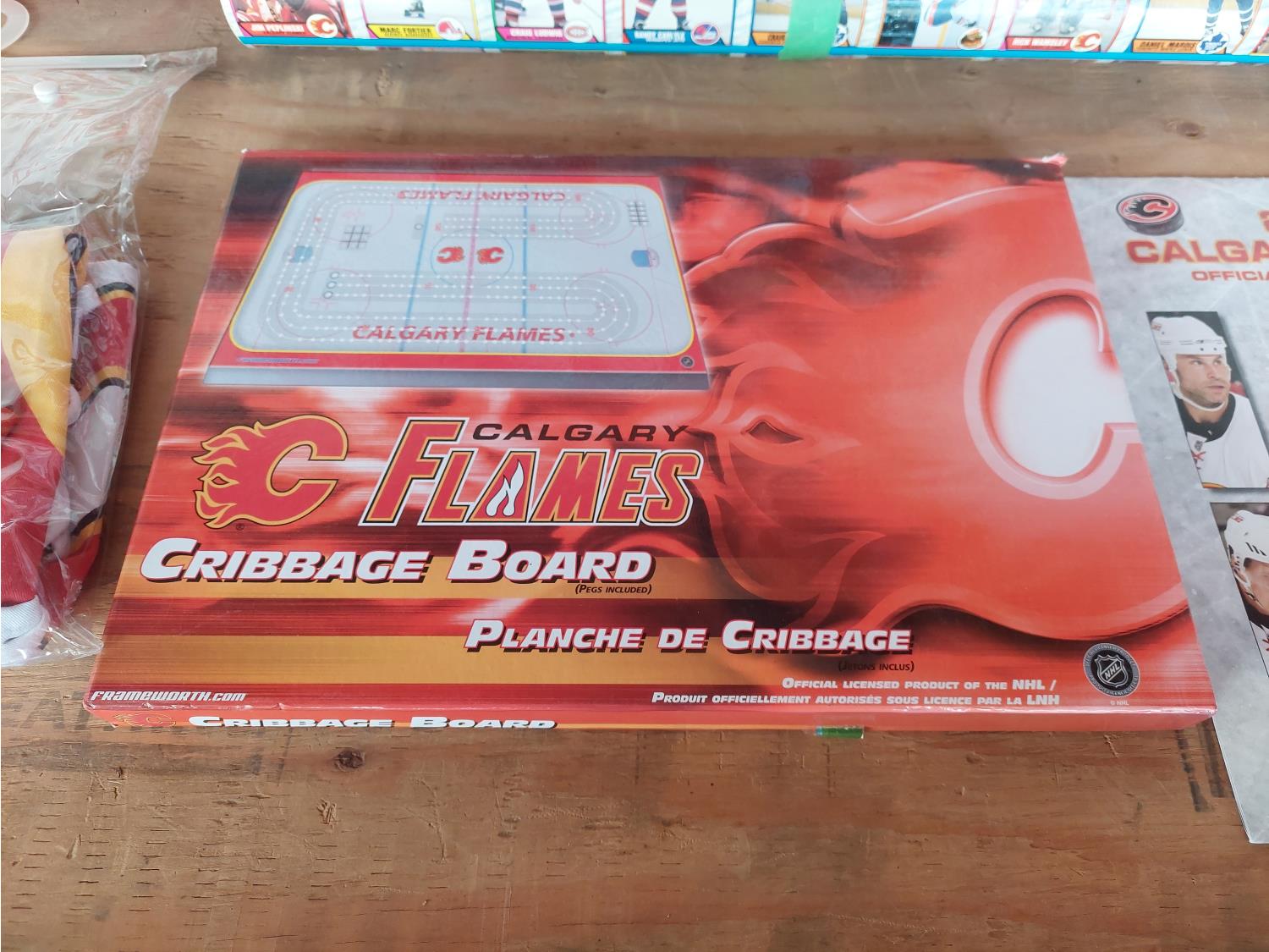 1351 Qty of Calgary Flames Cribbage Board and Merchandise