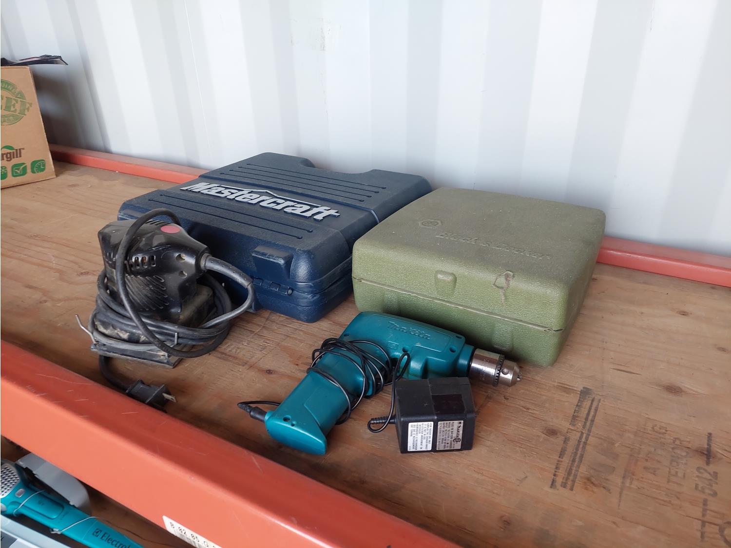 1224 Qty of Corded Drills, Palm Sander, and 18V Mastercraft Drill