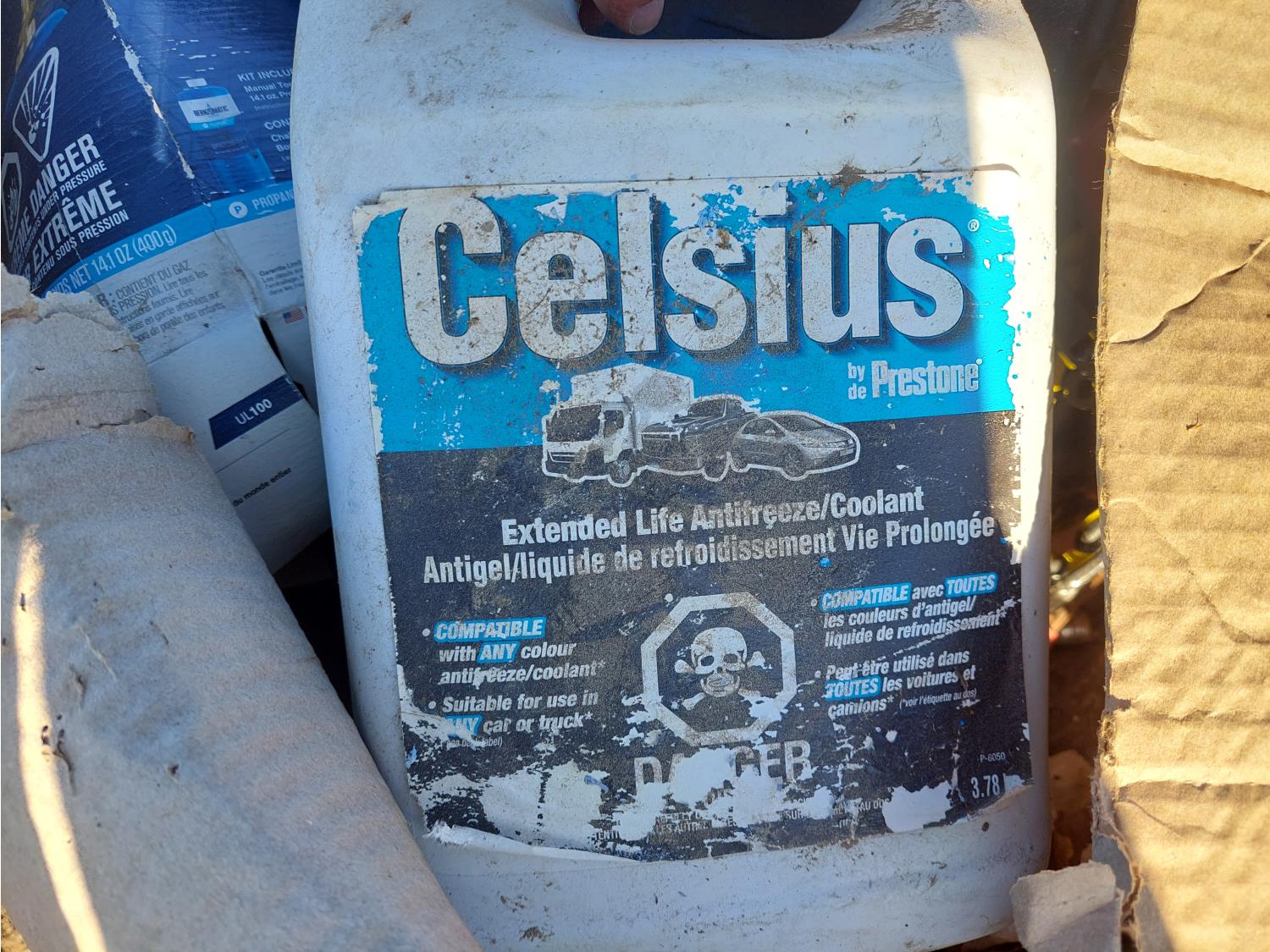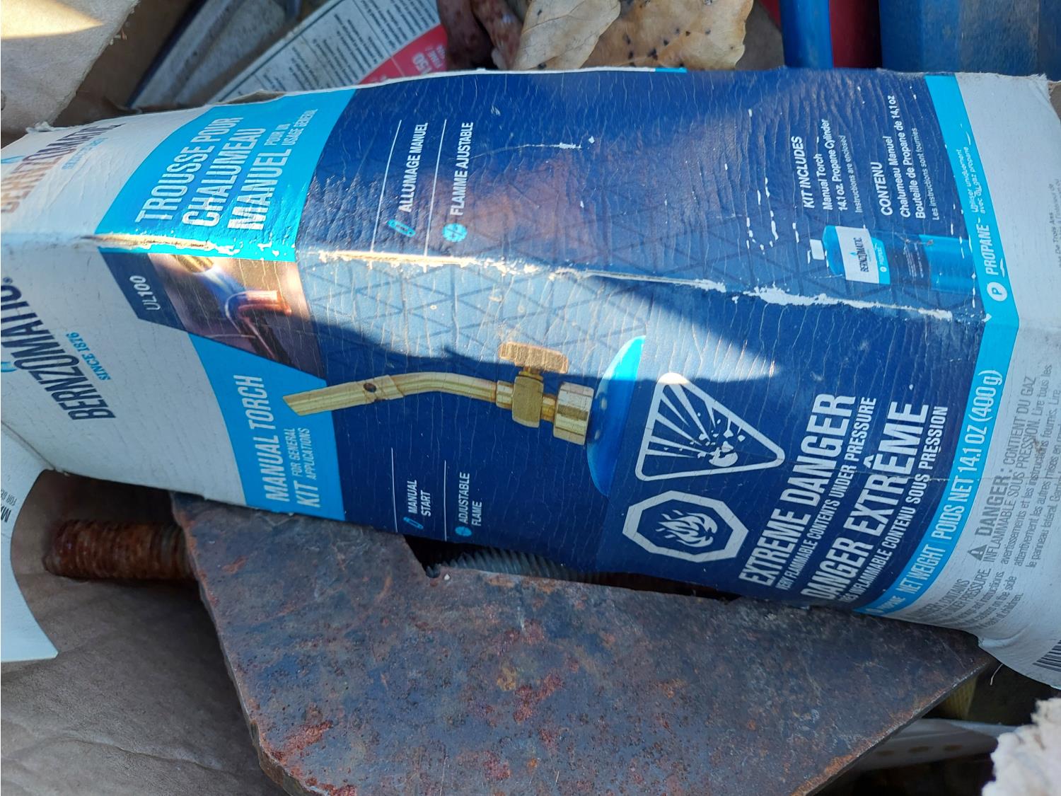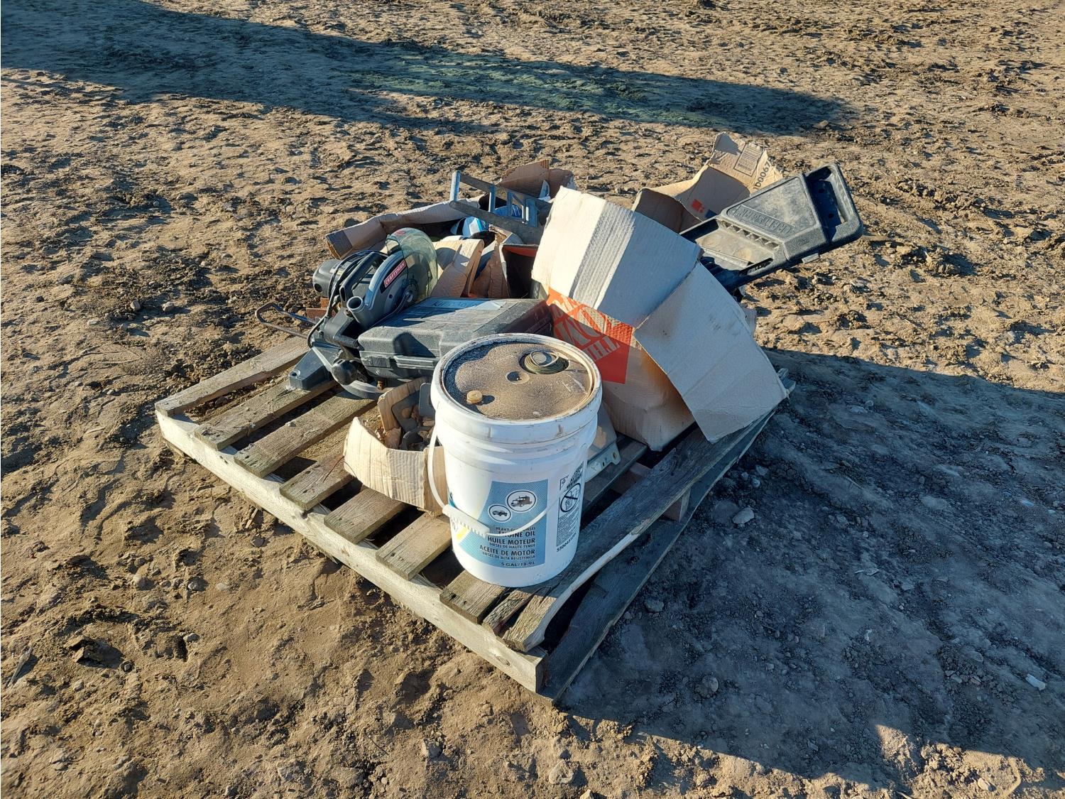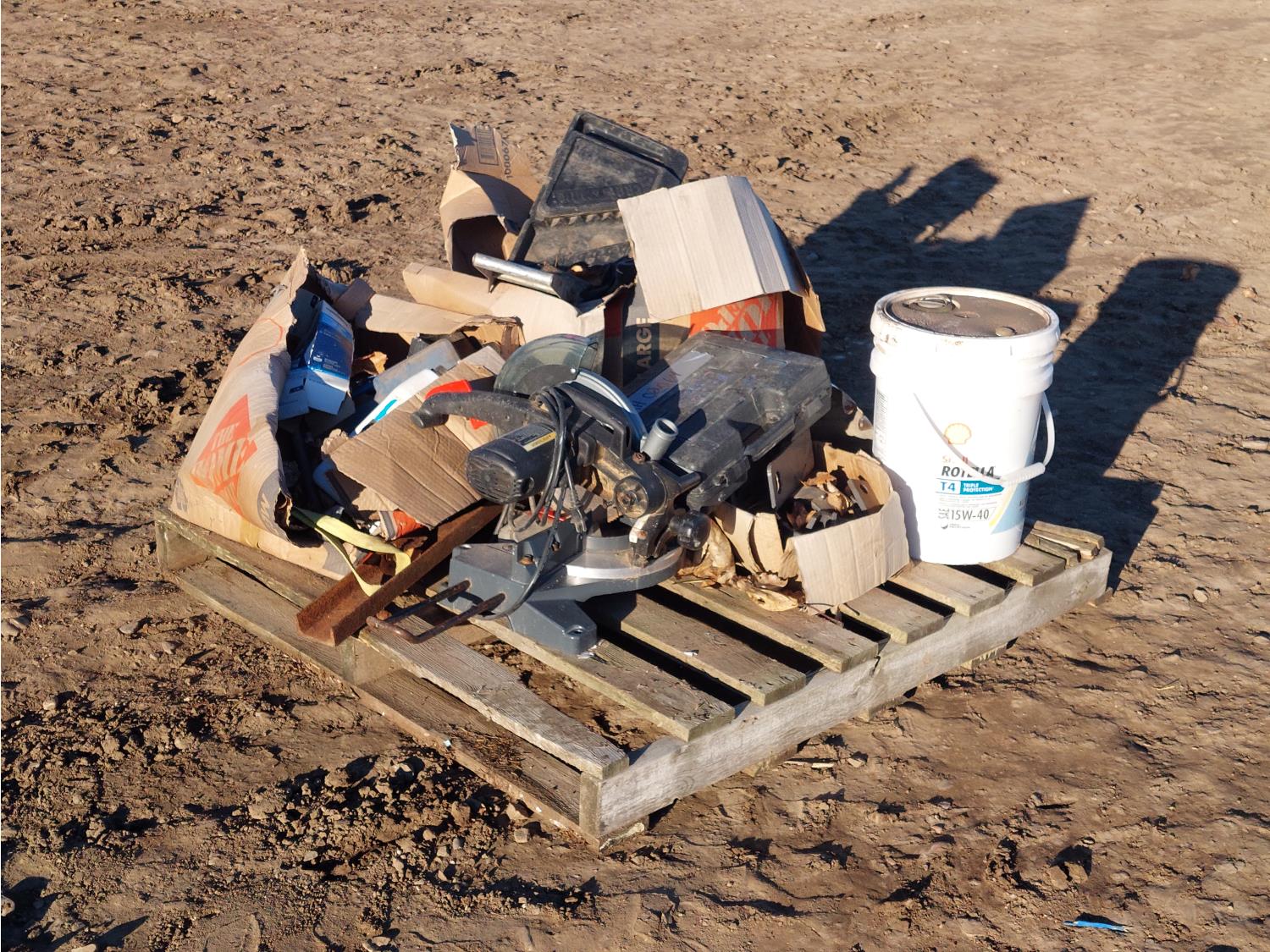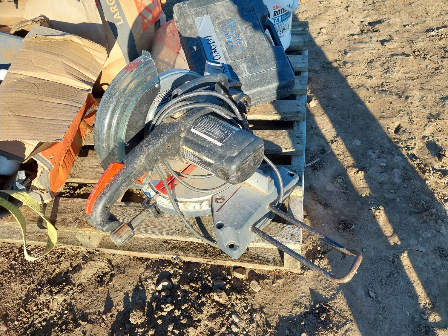 10 inch compound miter saw, diesel engine oil, antifreeze, and propane torch