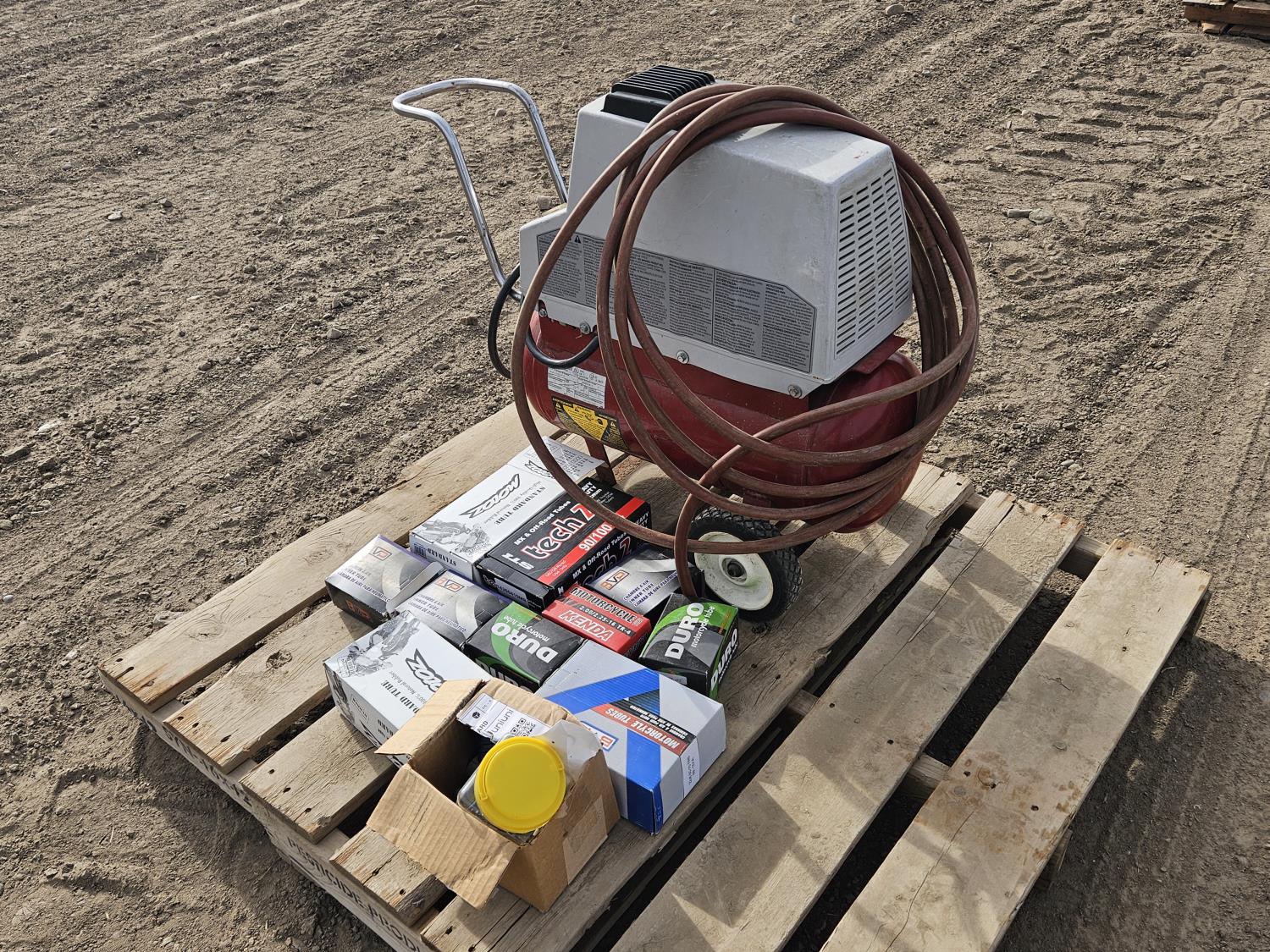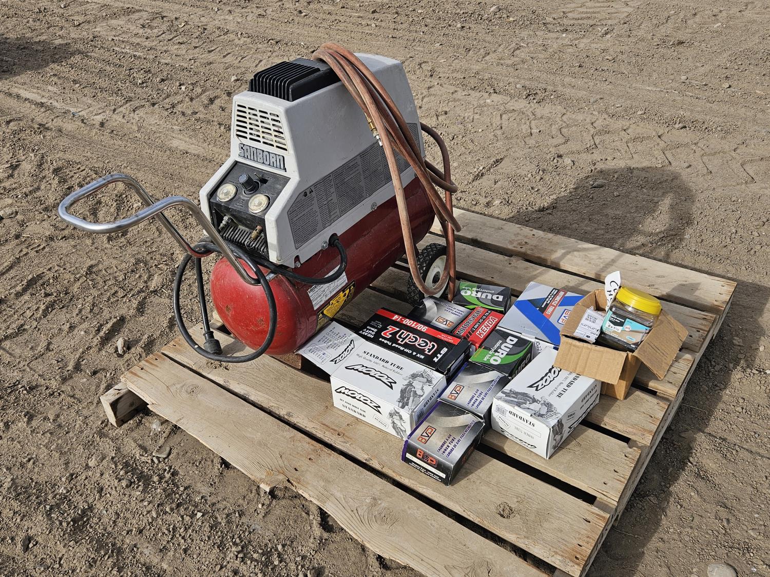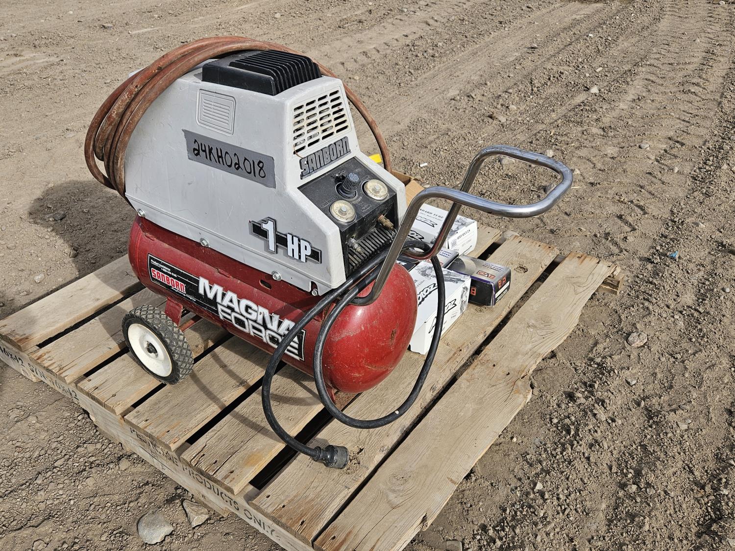 1155 Sanborn Magna Force 1 HP Air Compressor w/ Misc Shop Supplies