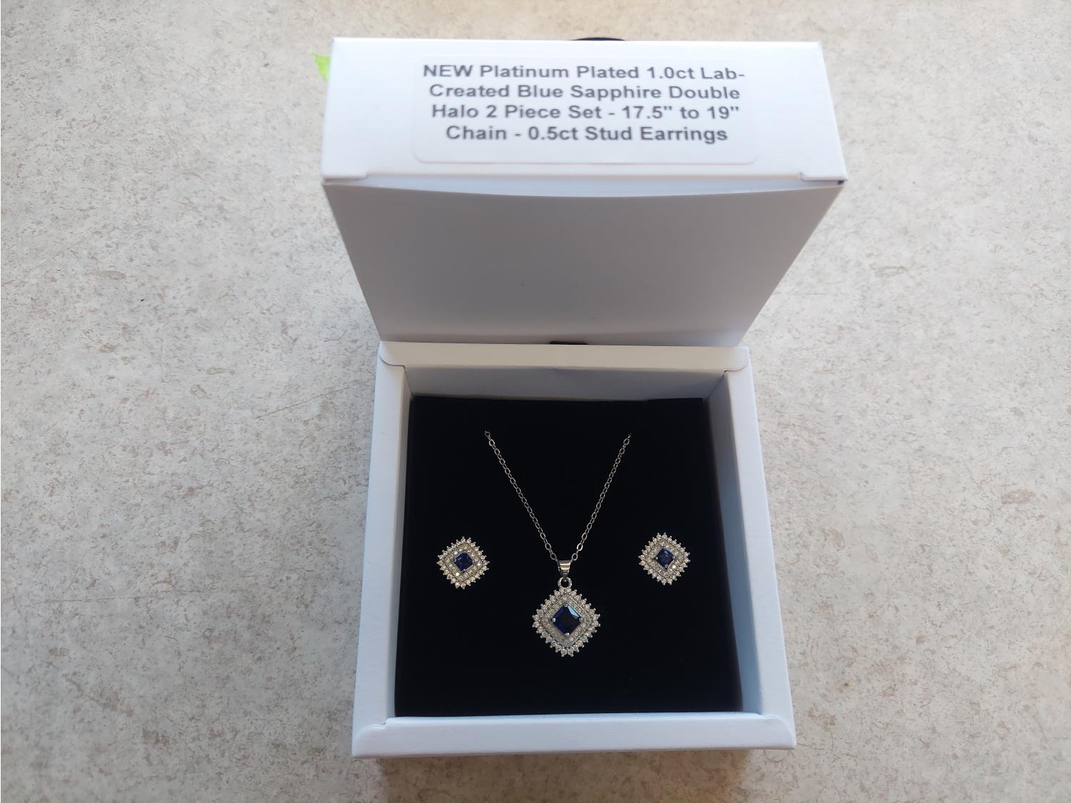 1036 Smartlife Platinum Plated 1.0Ct Blue Sapphire Necklace and Studd Earrings (Unused)