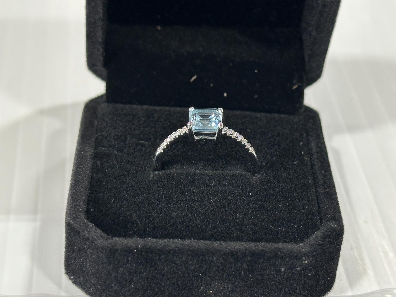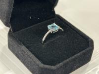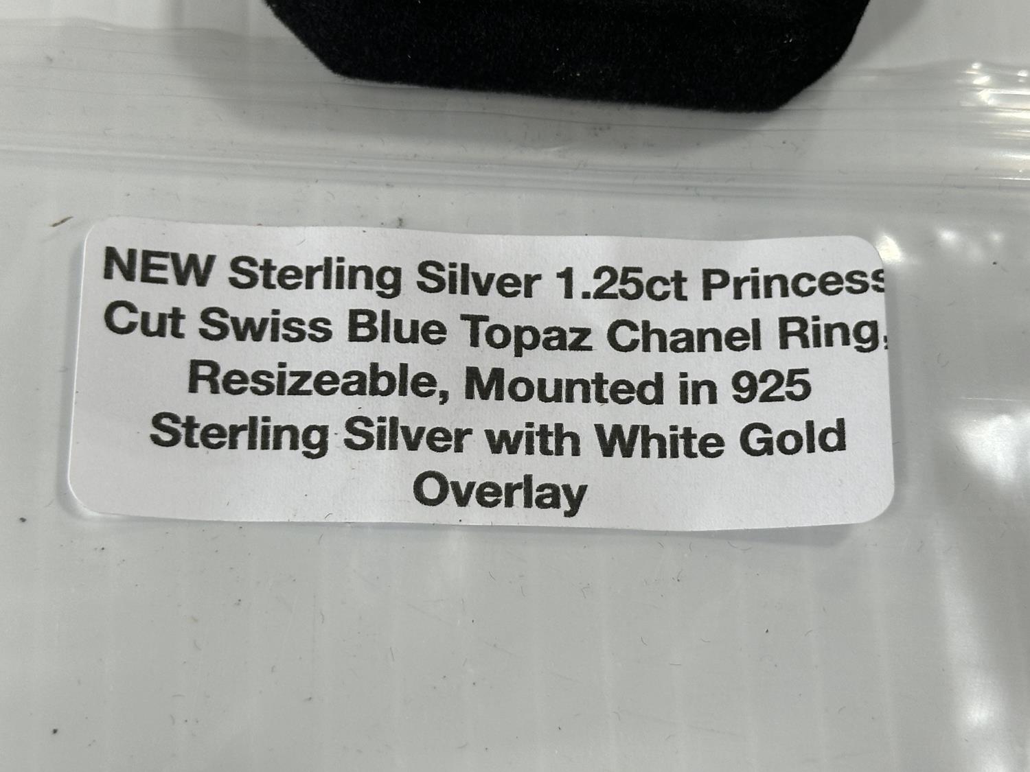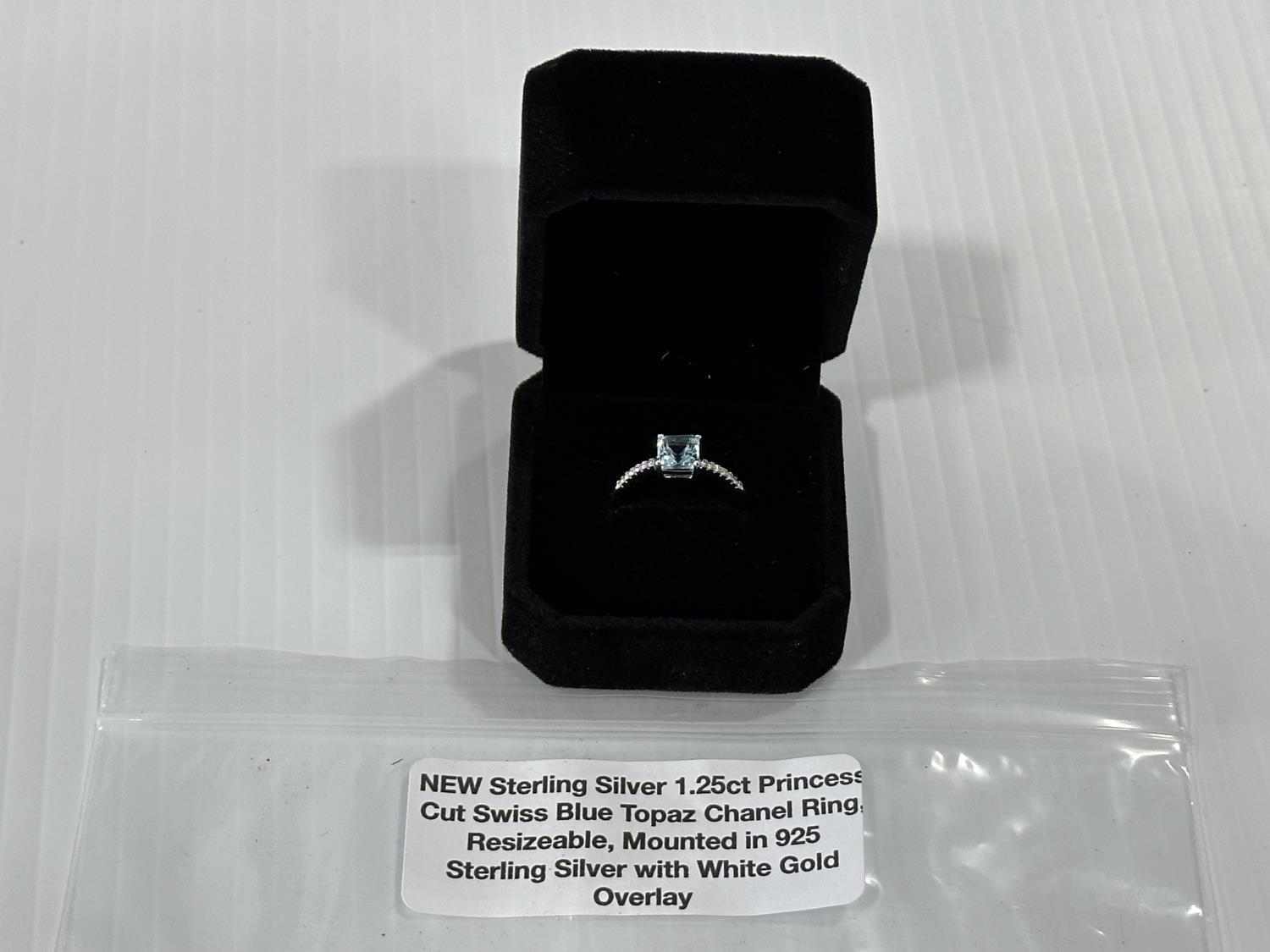 2160 1.25Ct Princess Cut Swiss Blue Topaz Chanel Ring (Unused)