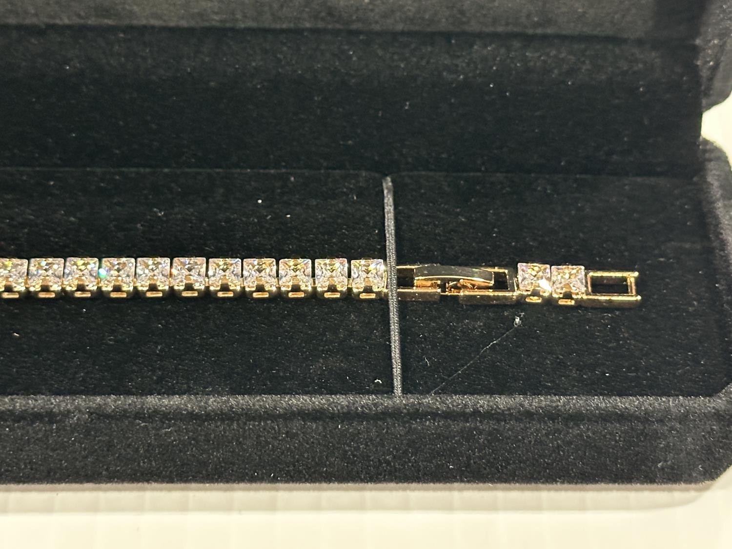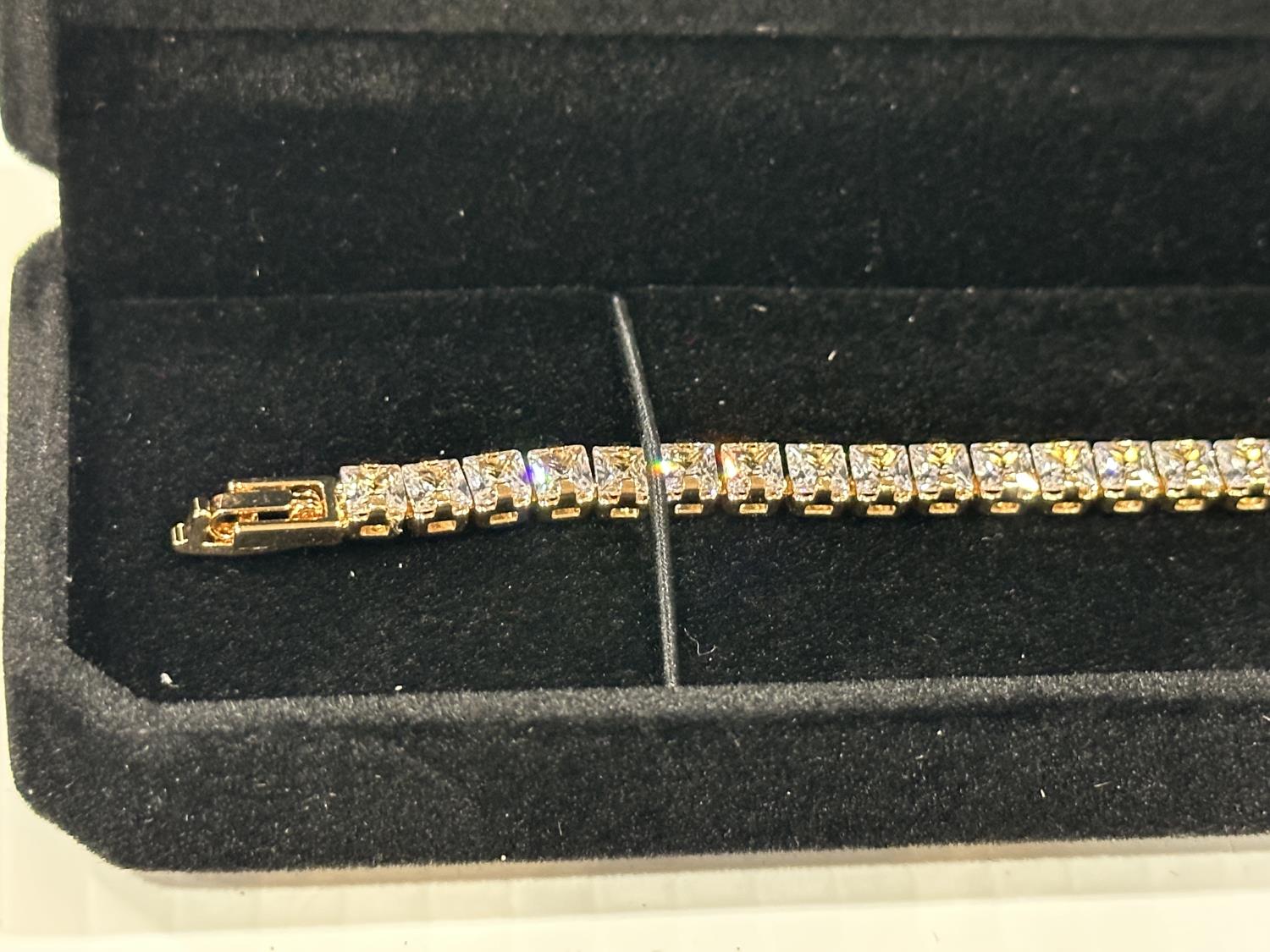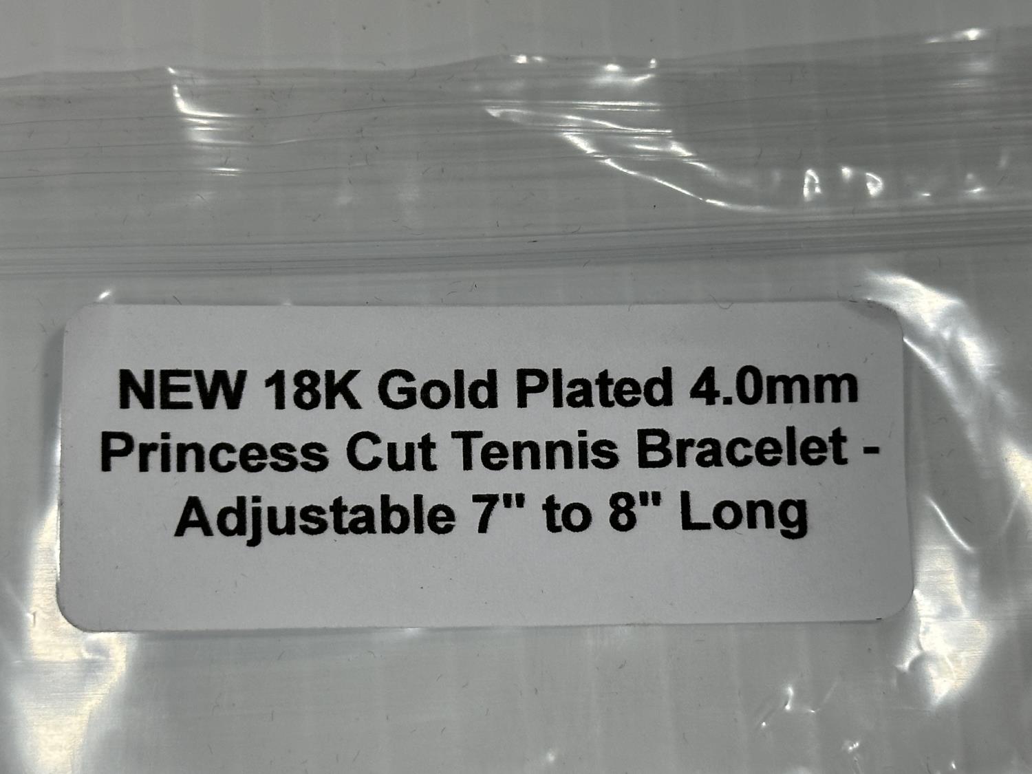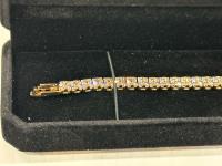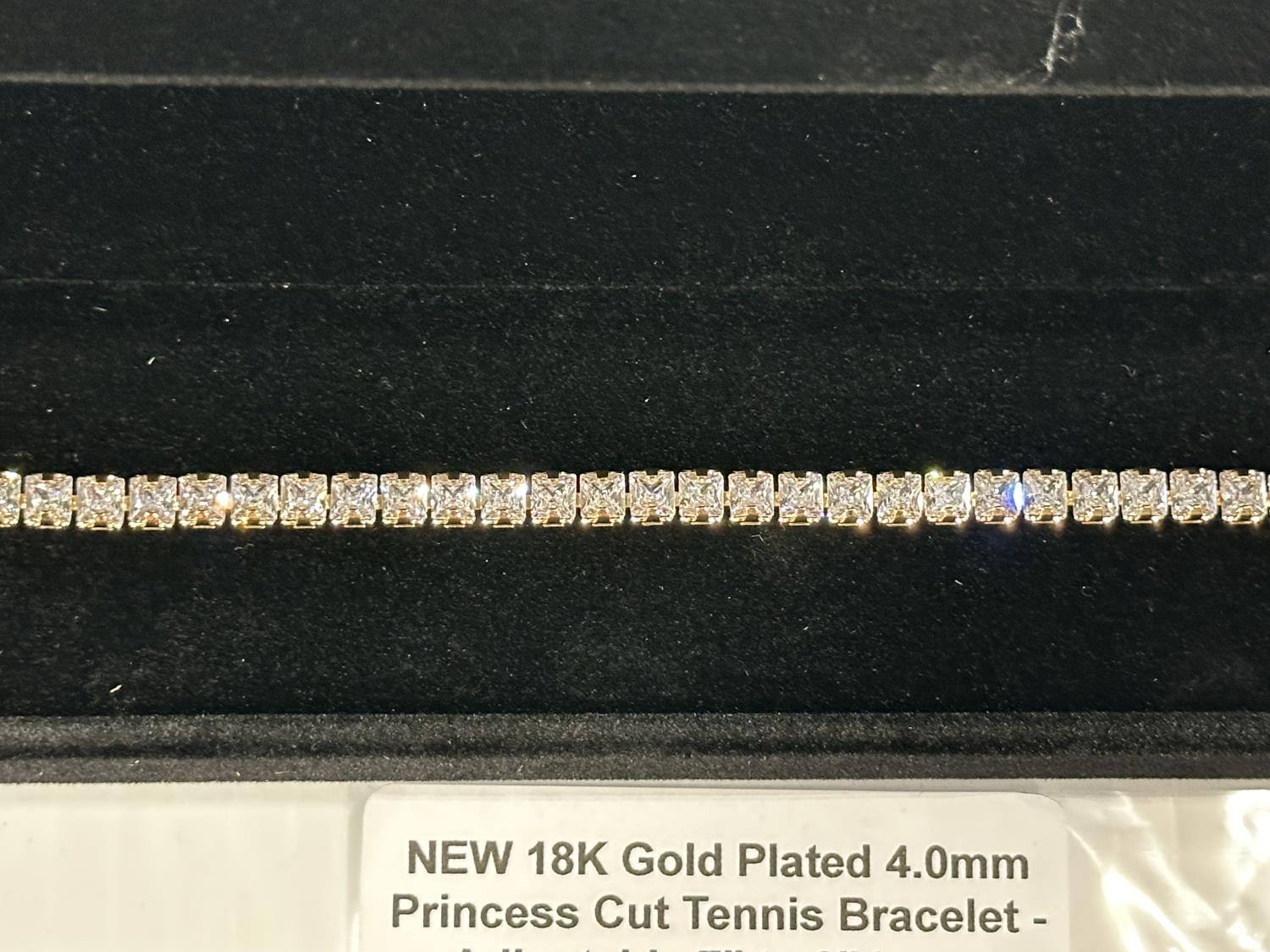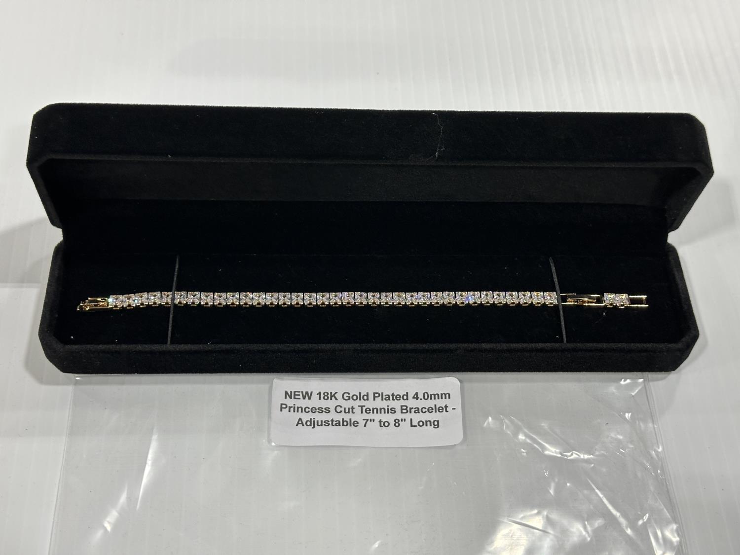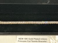 2182 18K Gold Plated 4.0 mm Princess Cut Tennis Bracelet (Unused)