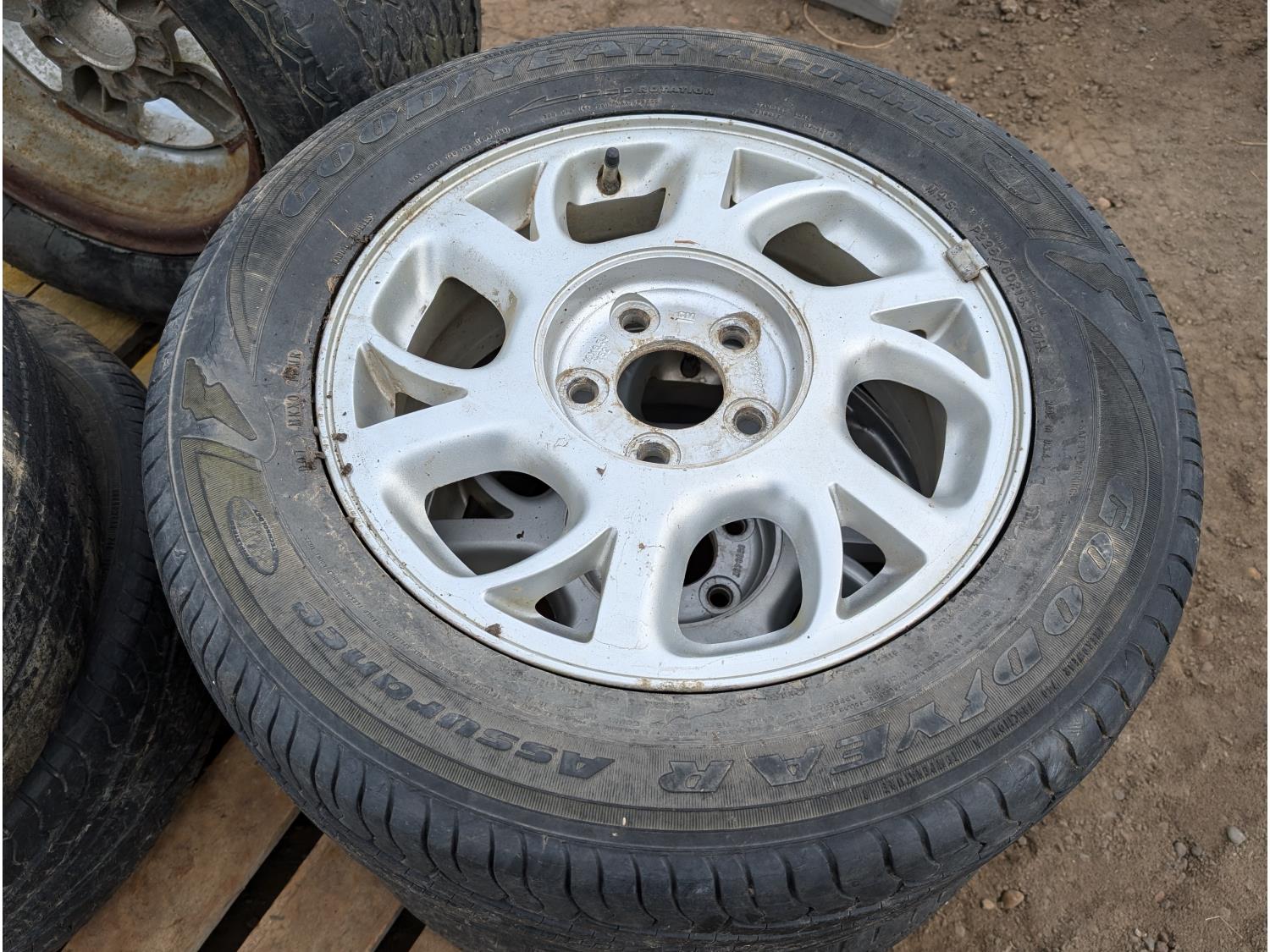 2262 (2) Goodyear Assurance and (2) Goodyear Allegra 225/60R16 Tires On 5 Bolt Chevrolet Rims