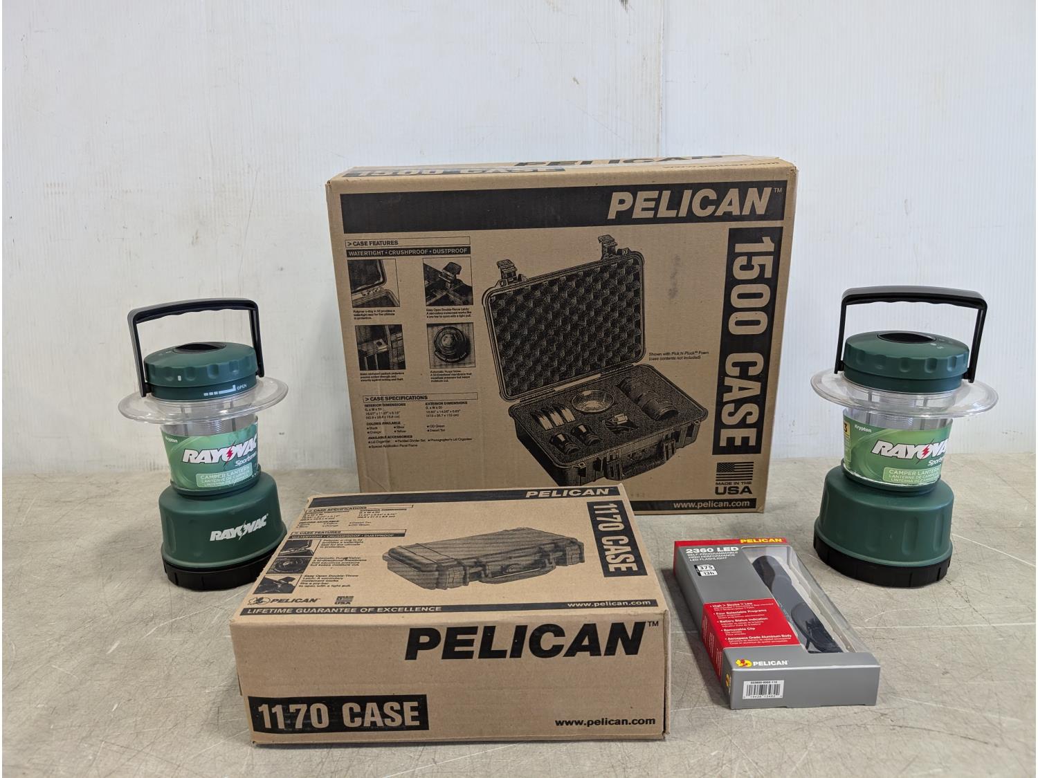 1944 (2) Pelican Cases, Flashlight and (2) Rayovac Lanterns (Unused)