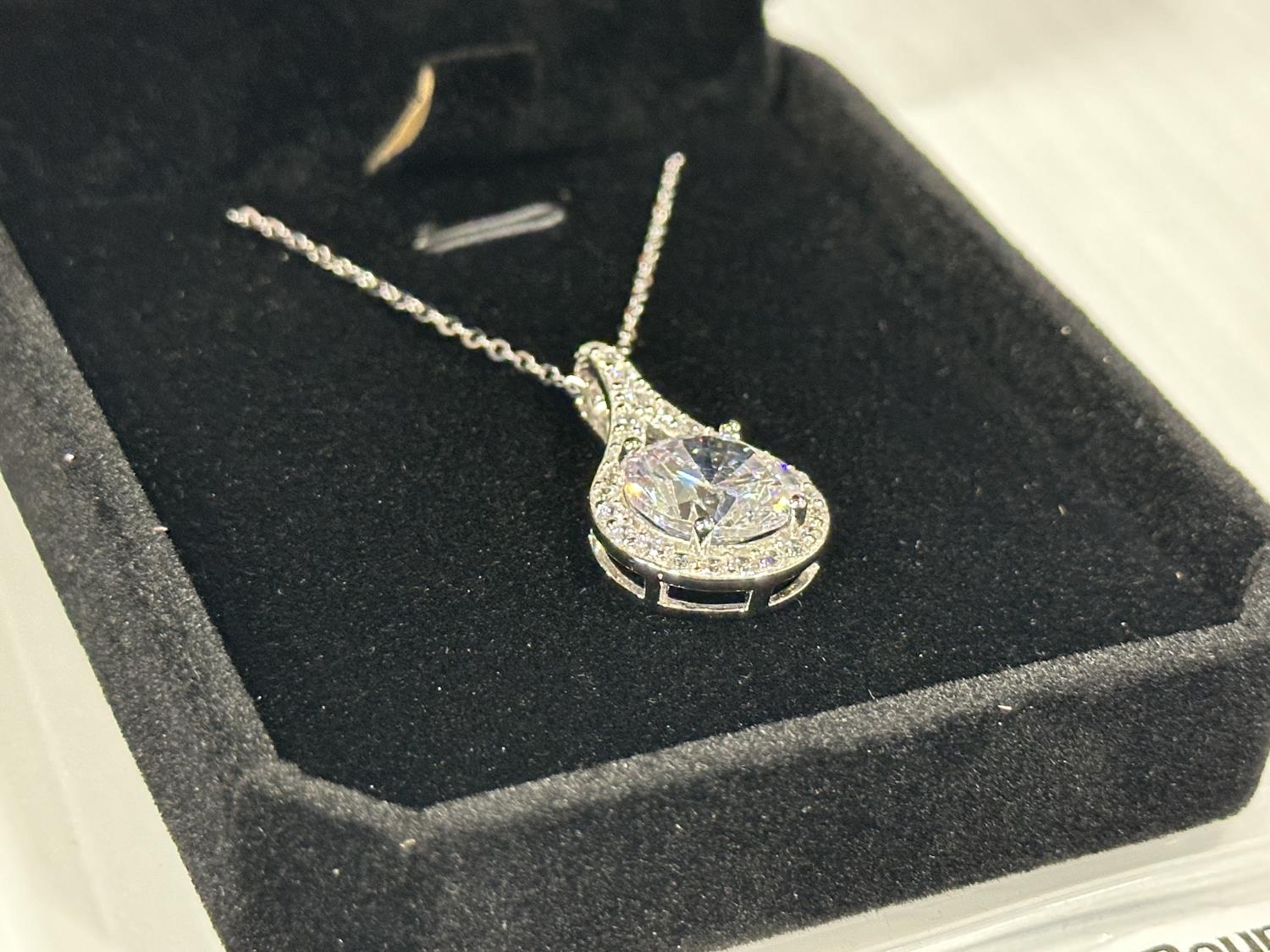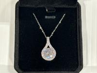 mounted in 925 sterling silver with white gold overlay, chain adjustable 16 inch to 18 inch