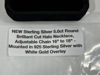 2174 5.0Ct Round Brilliant Cut Halo Necklace (Unused)