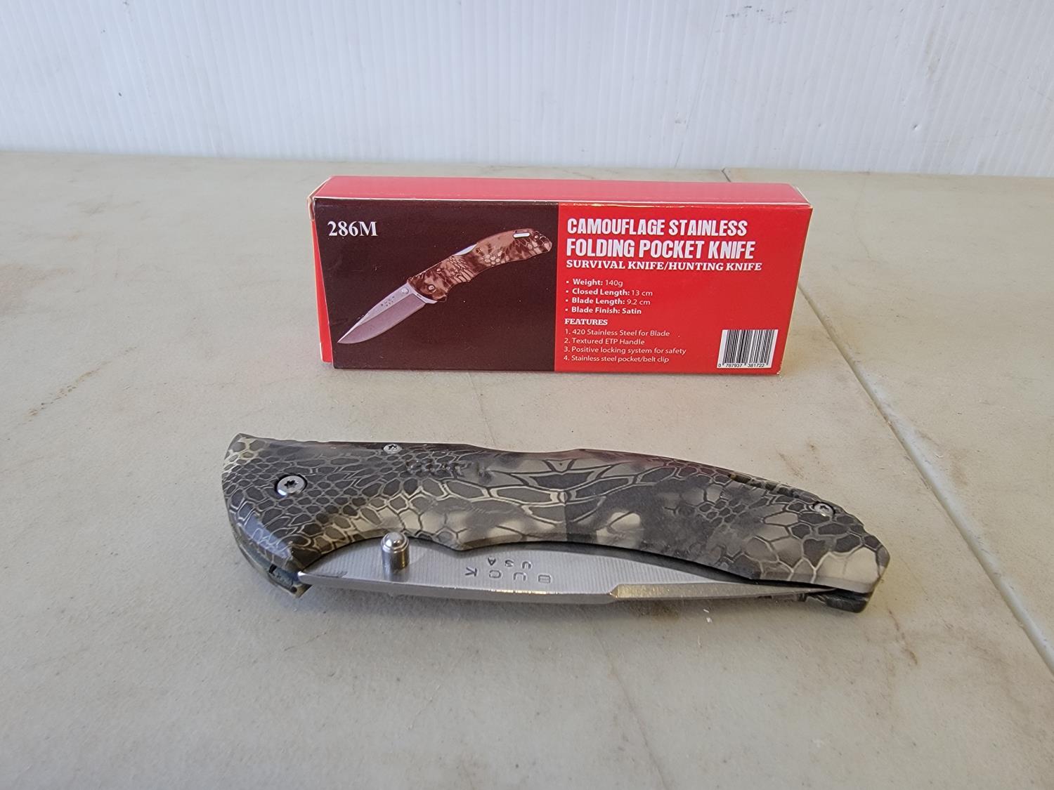 1548 Camouflage Stainless Steel Folding Pocket Knife (Unused)