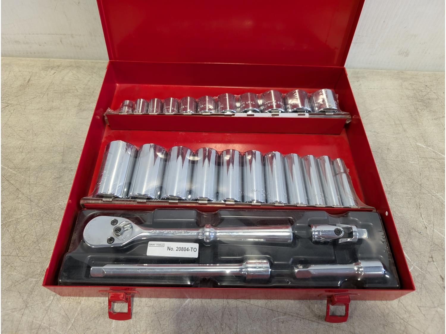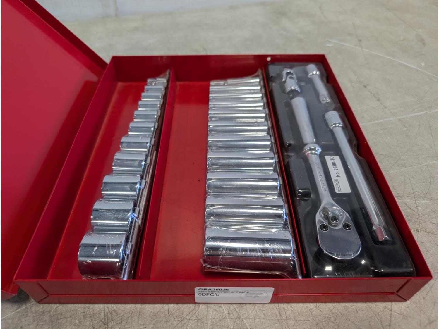 2120 Gray Tools 26 Piece 3/8 Inch Drive SAE Ratchet and Socket Set (Unused)
