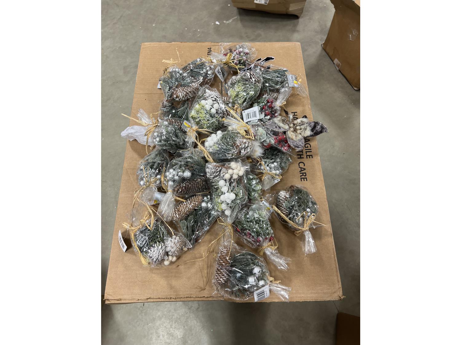 Assorted pine cone Christmas ornaments – 1 unit (box full)