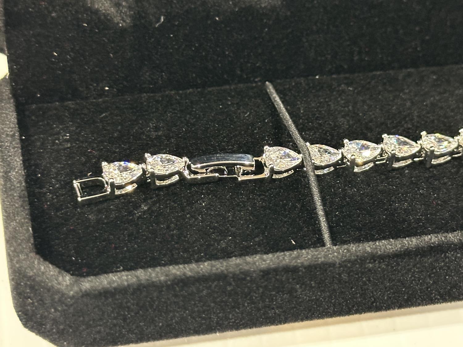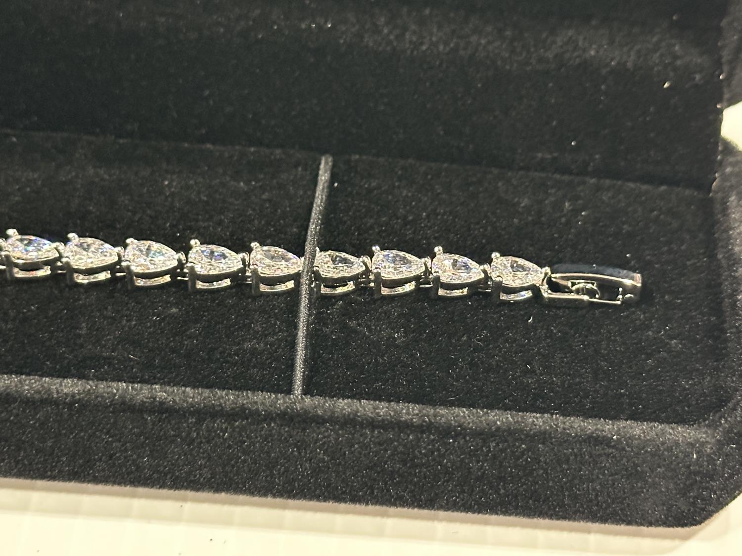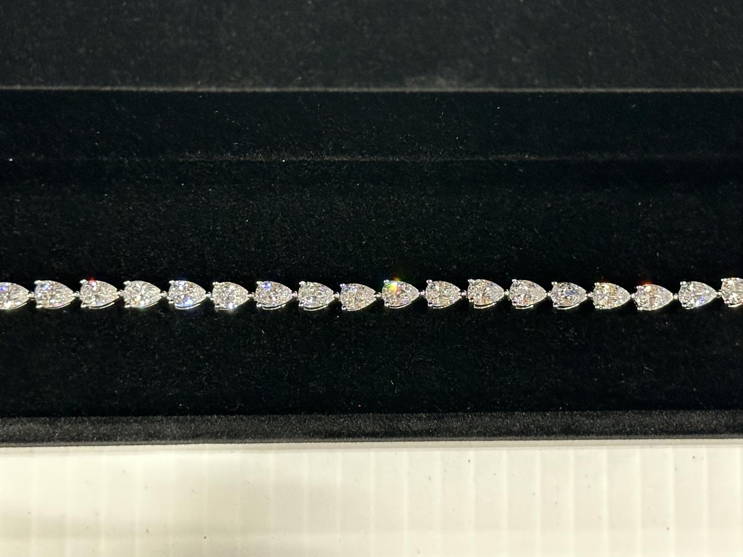 2181 Platinum Plated 4.0X6.0 mm Pear Cut Tennis Bracelet (Unused)
