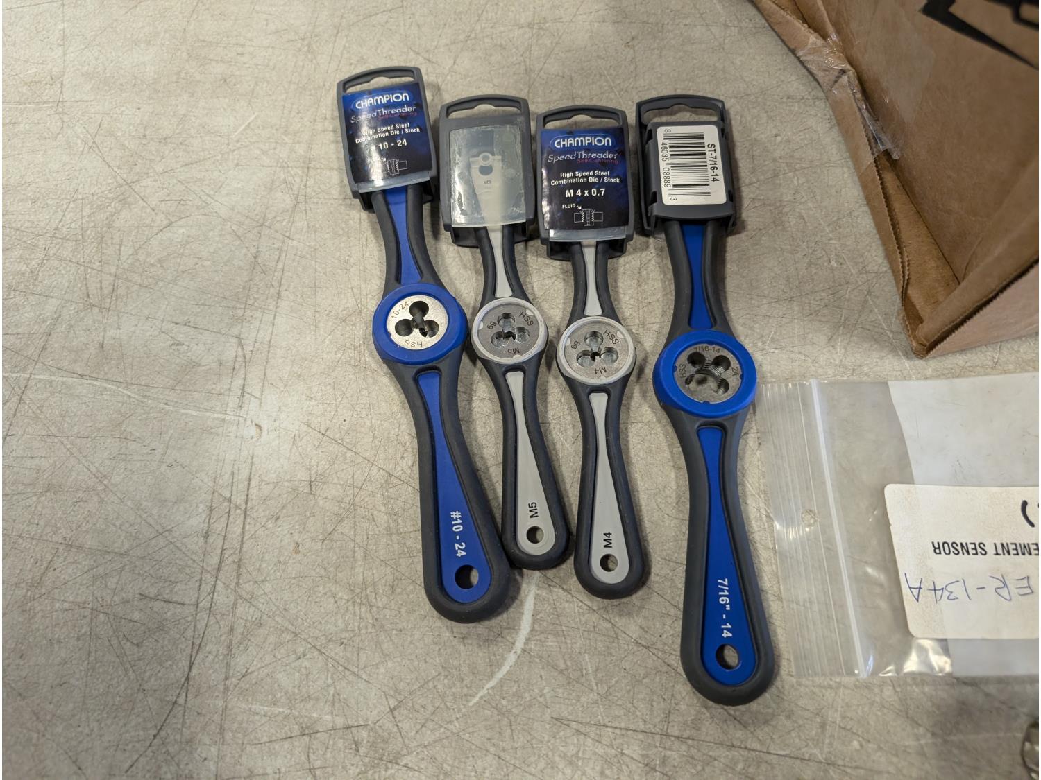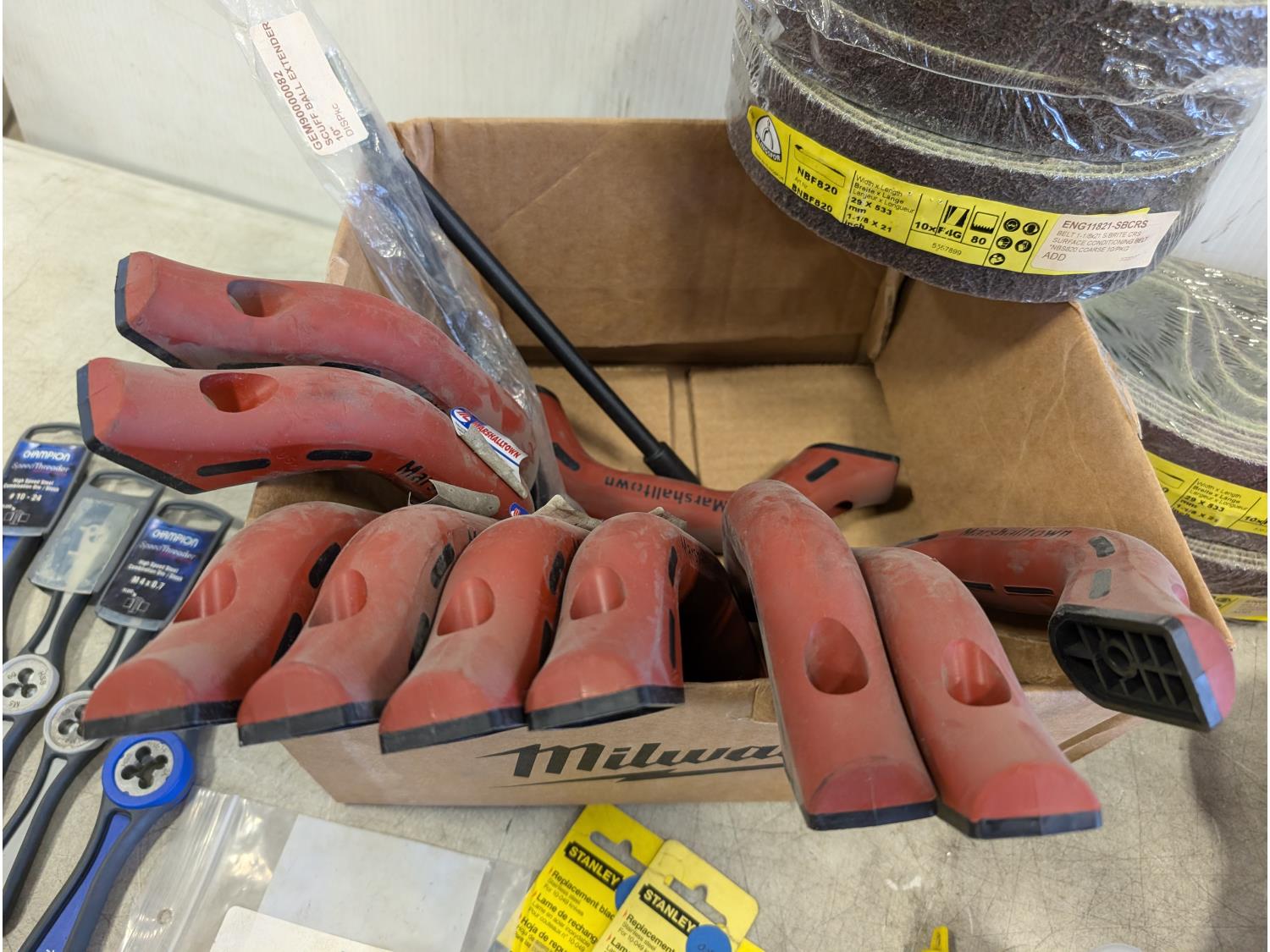 Speed threaders, handles, sanding belts, Stanley replacement blades, impact deep sockets,