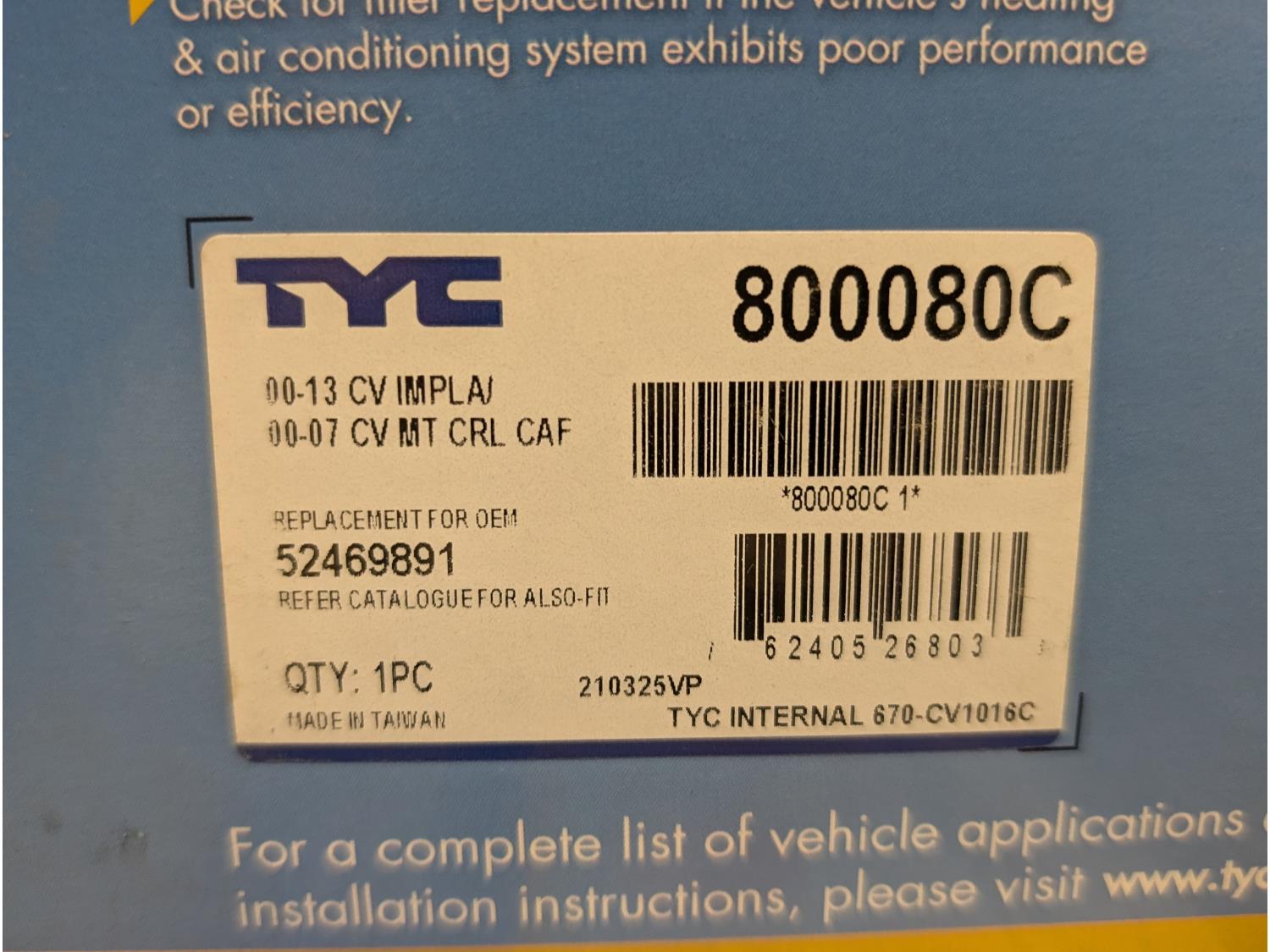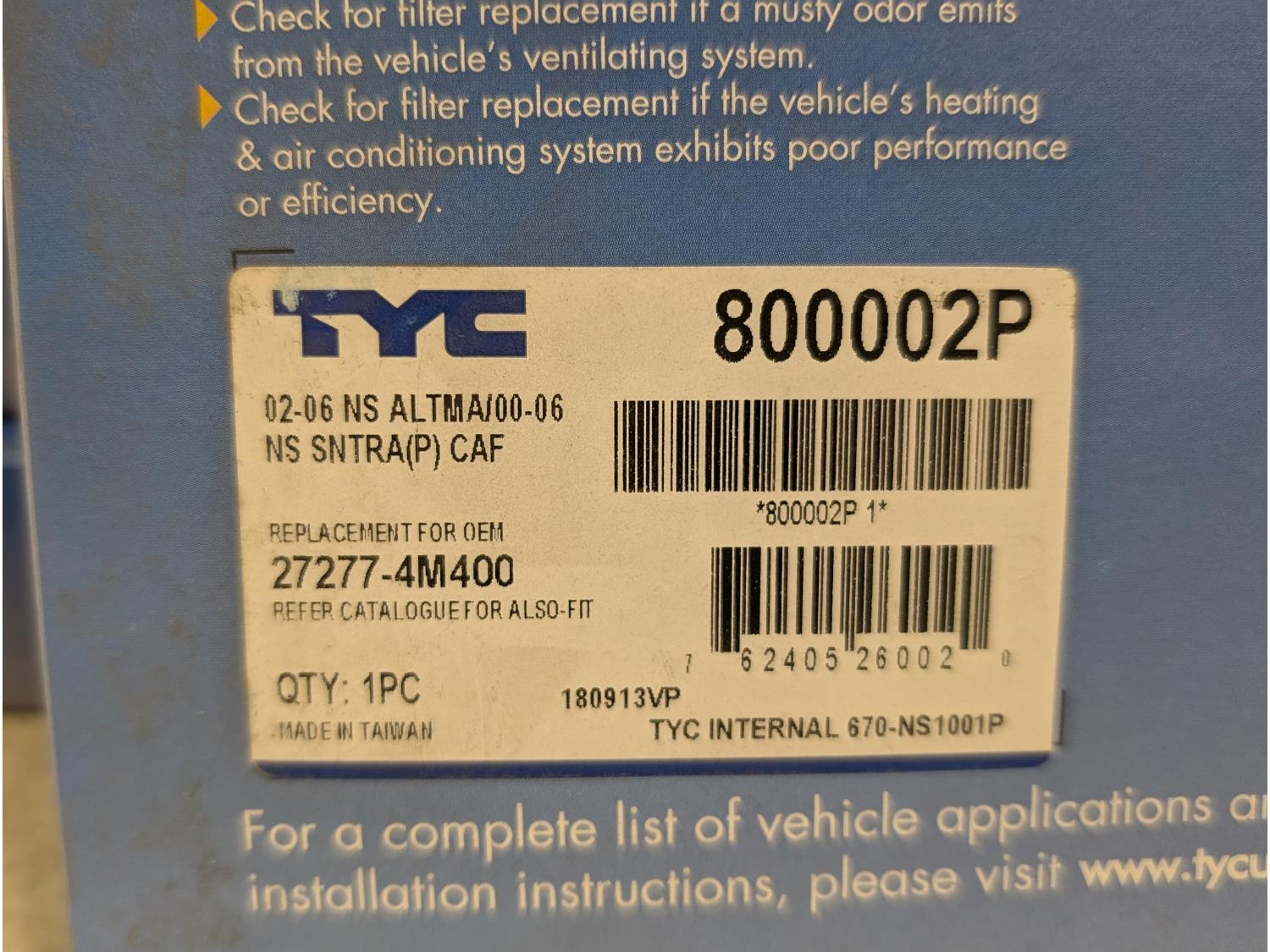 1895 Qty of Vehicle Cabin Air Filters (Unused)