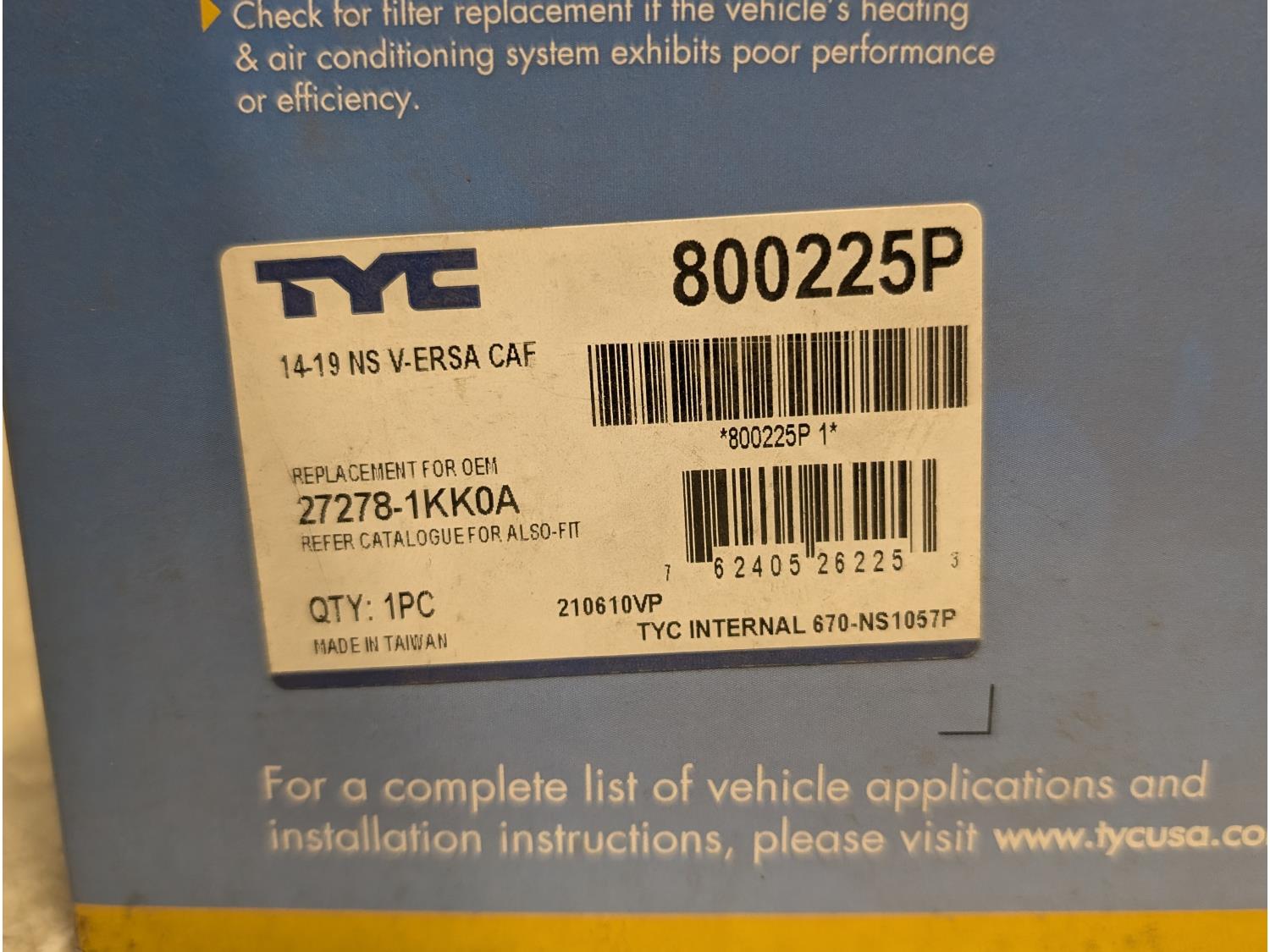 1896 Qty of Vehicle Cabin Air Filters (Unused)