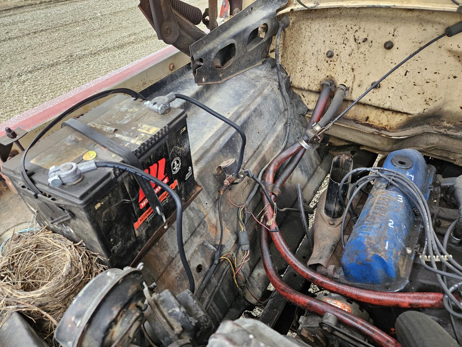 V8 gas engine, Eaton Fuller 5X2 manual transmission, 100 inch x 179 inch deck, hoist, 8.25-20 tires