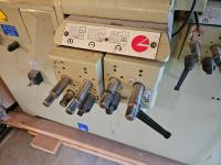 3 phase, 96 Amp, 230 Volt, profiling capacity 40 mm, max working width 230 mm, max working height 125 mm, 6000 RPM cutter speed, profiling tool diameter from 100 mm to 180 mm, infeed surface length 2000 mm, planer drive motor 5.5 HP, upper horizontal spindle motor 5.5 HP, vertical spindle motor 7.5 HP, bottom horizontal spindle motor 7.5 HP, universal spindle motor 5.5 HP, large selection of profiling blades