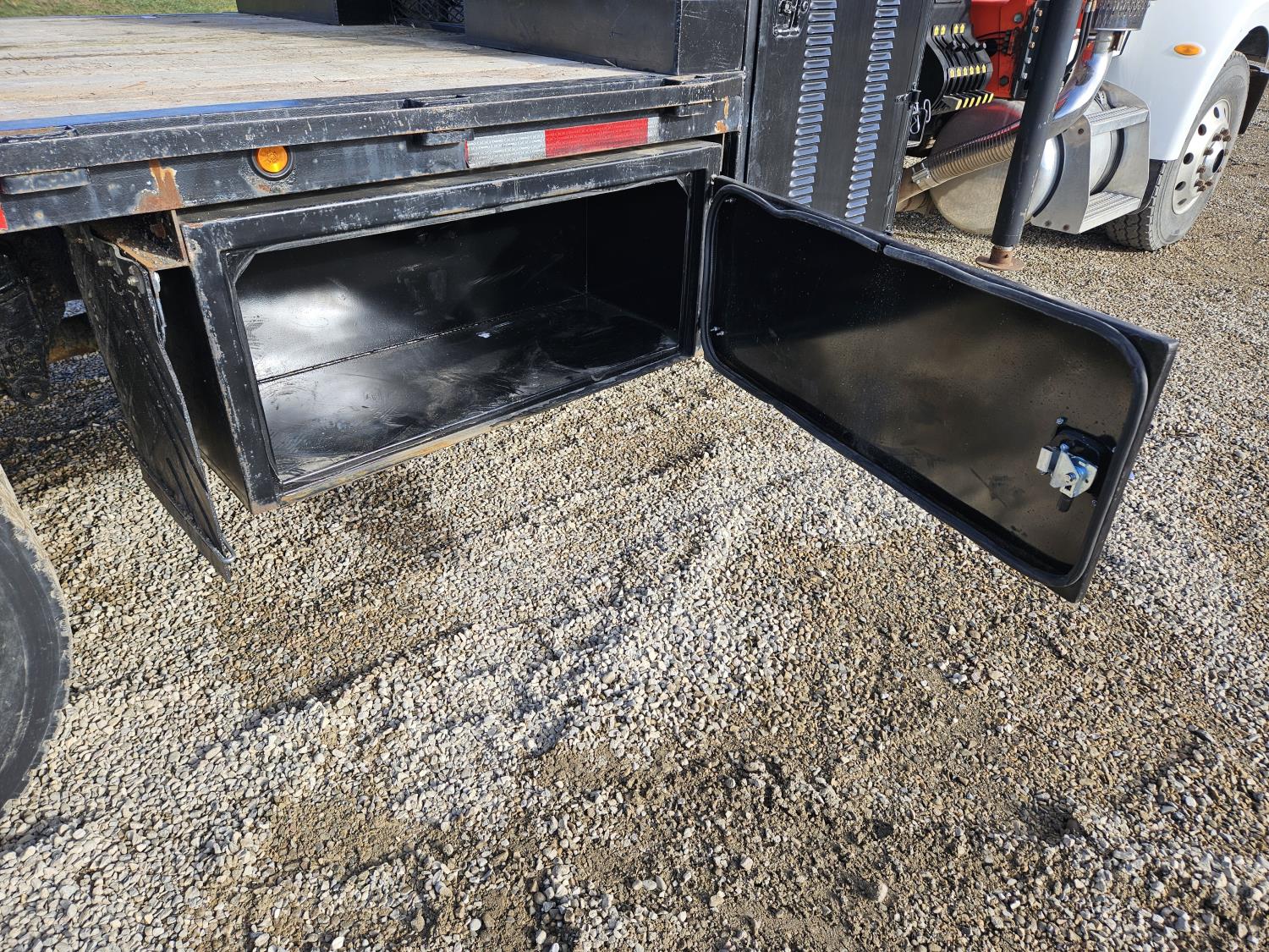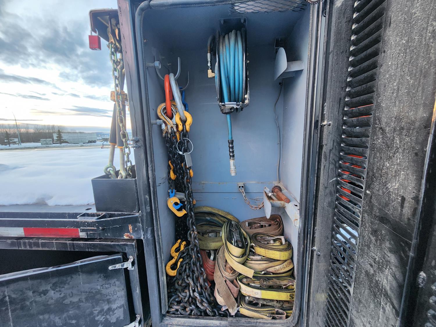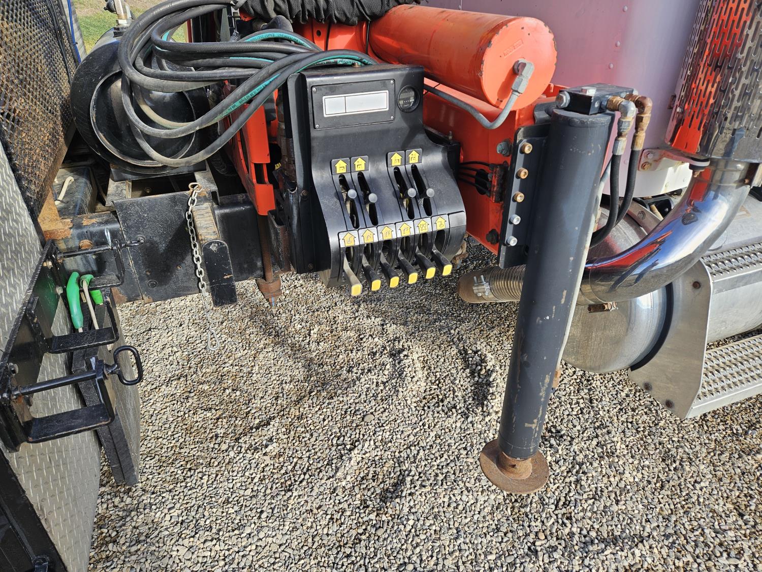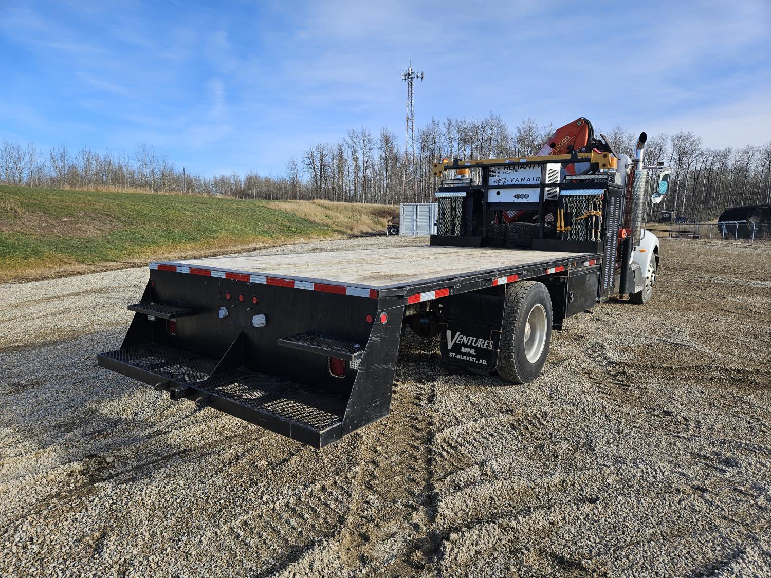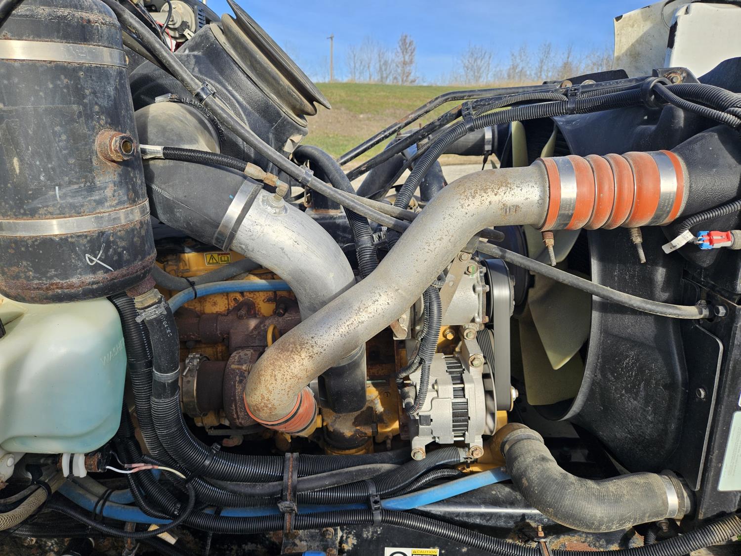Caterpillar C7 6 cylinder engine, engine brake, engine block heater, positive air shutoff, 6 speed manual transmission, A/C, cruise control, air ride driver seat, radio, hydraulic wet kit, beacons, chain holders, steel tool boxes, 102" wide X 187" long deck, Palfinger PK12000 Knuckle boom crane, outriggers, 5000 lb Caldwell spreader bar, Reliant RS85 on board compressor, 20 gallon tank, Palfinger 12000 knuckle crane, outriggers, spring suspension, 12,000 lb front axle, 21,000 lb rear axles, diff lock, 11R22.5 tires