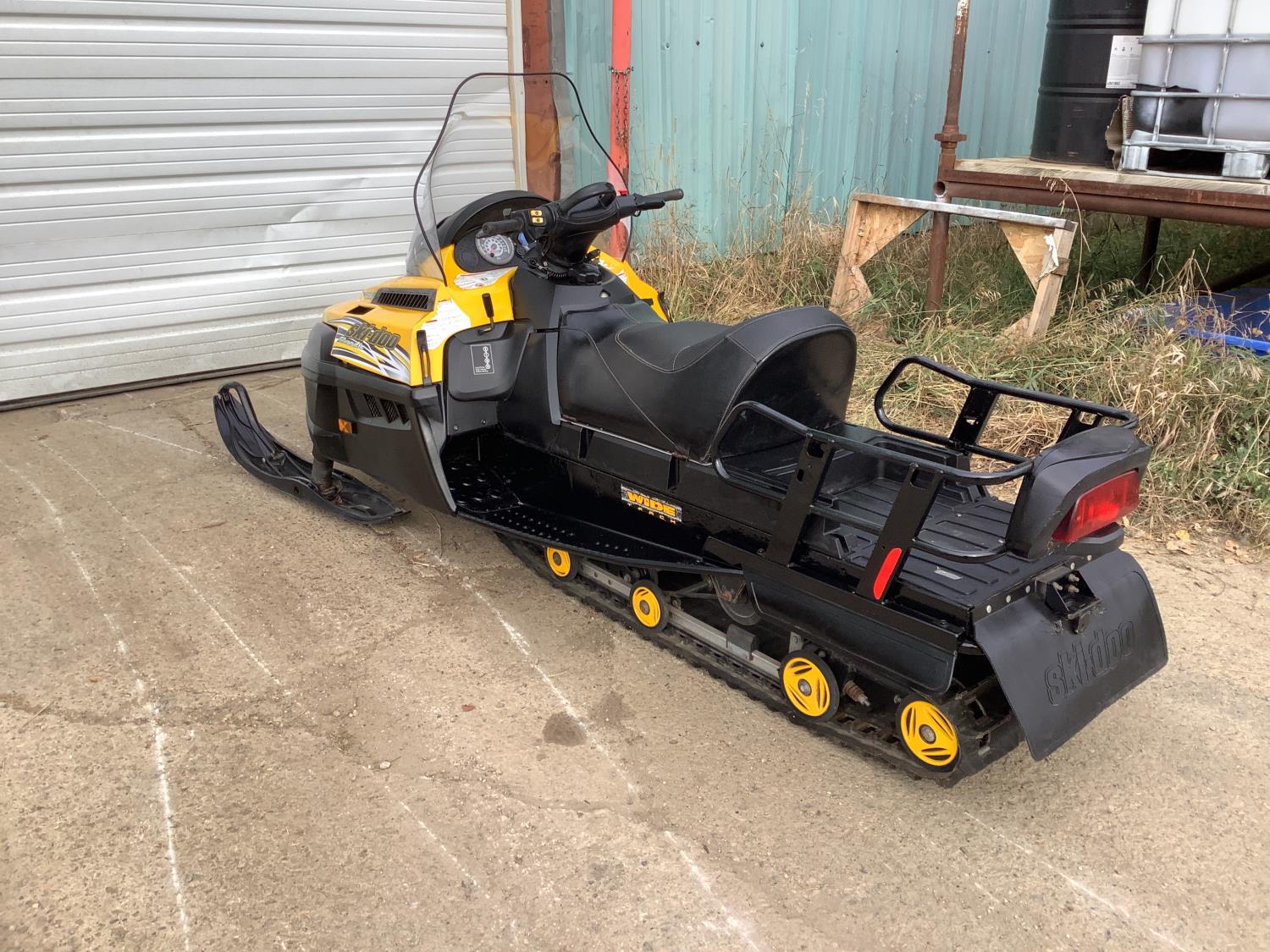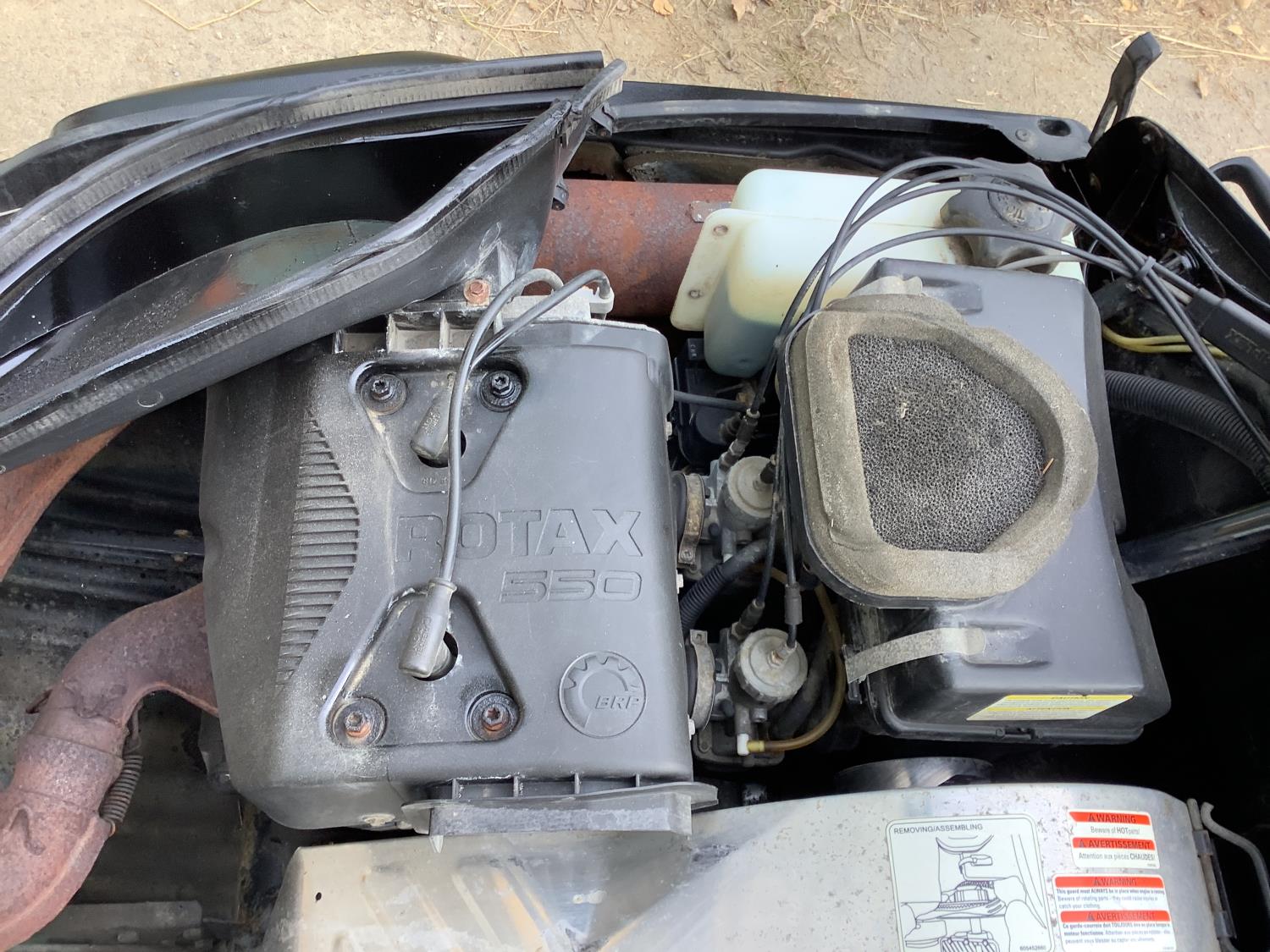 550 cc Rotax 2 cylinder Fan cooled engine, electric start, reverse, rear tow hitch, two speed transmission, dual carburetor's, wide track