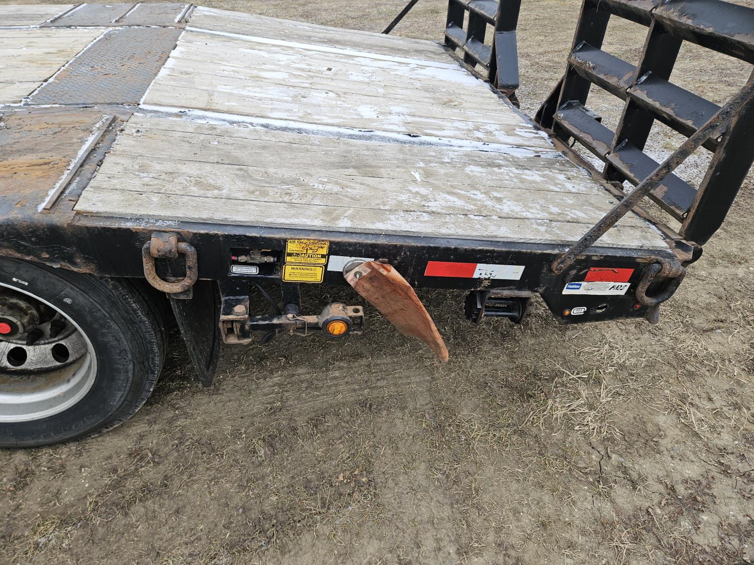 120 inch wide deck, 127 inch upper deck, wood deck, cargo winches, 6 ft beaver tail, 6 ft air operated loading ramps, swing out wide load lights, rear strobe lights, front deck pop up top, air ride suspension, all aluminum wheels, 275/70R22.5 tires