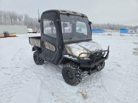 1105 cc fuel injected water cooled diesel engine, CVT transmission, Hi/Lo range, reverse, enclosed cab, 2 passengers, A/C, heater, windshield, power steering, front winch, front brush guard, hydraulic dump box, receiver hitch, Realtree camo wrap, lexan windows Bluetooth stereo, rear differential lock, 25/10-12 tires