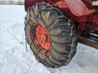 International Boss loader, 72 inch bucket, International 5.9 L 6 cylinder diesel engine, 16 speed partial power shift transmission, has torque amplifier, open station platform, 540/1000 PTO, 2 rear hydraulic outlets, 11.00-16 front tires, 18.4-34 rear tires